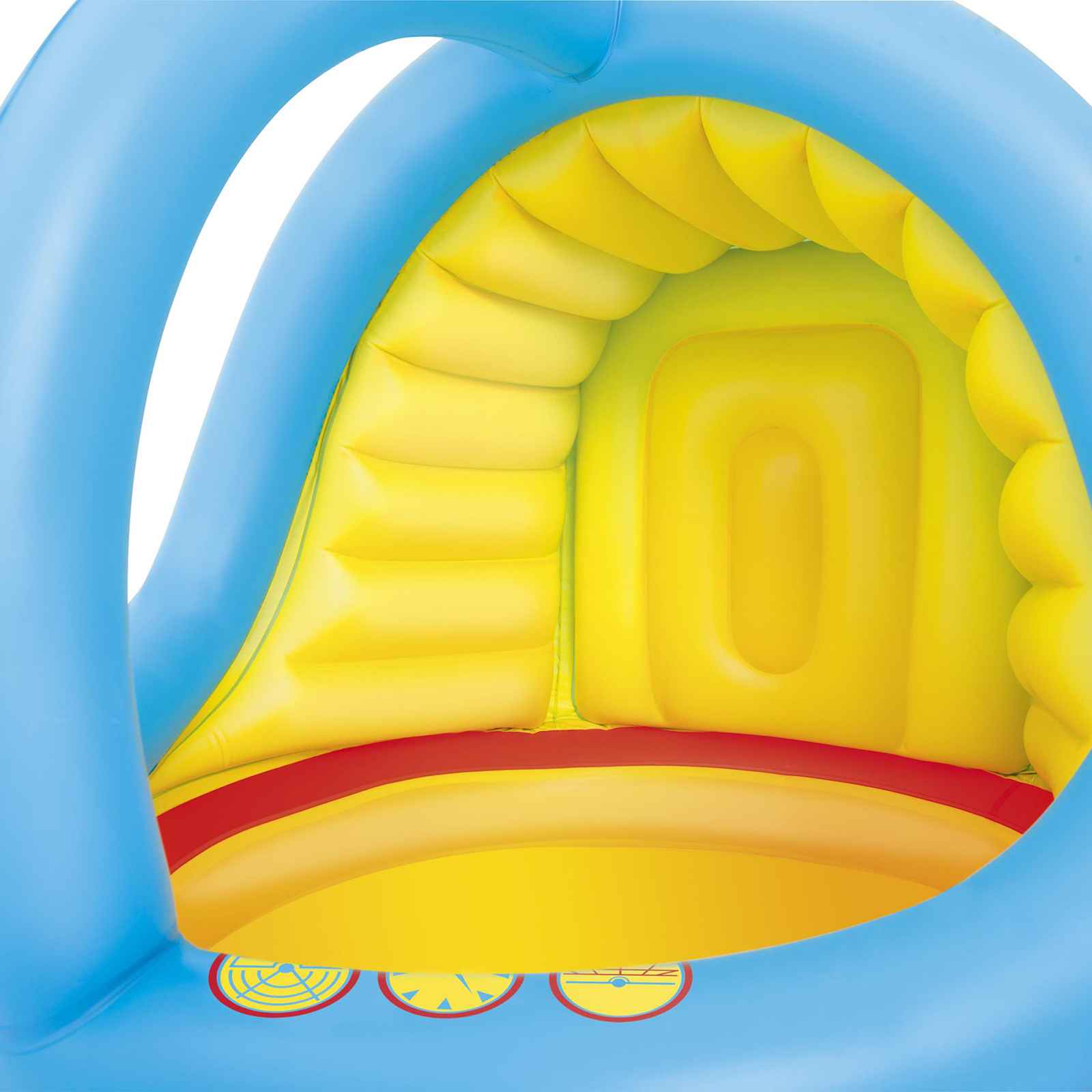 Hélice flexible en el techo. Cuenta con válvulas de seguridad para un fácil inflado y desinflado. Está fabricado en vinilo robusto probado.