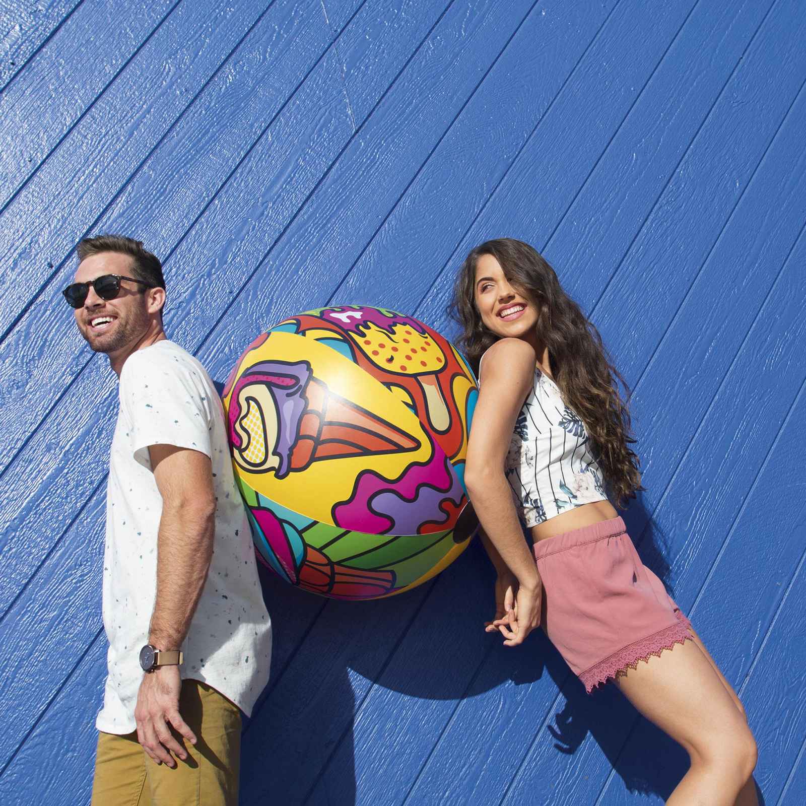 Tus fiestas en la piscina serán mucho más divertidas con esta gran pelota de colores llamativos.