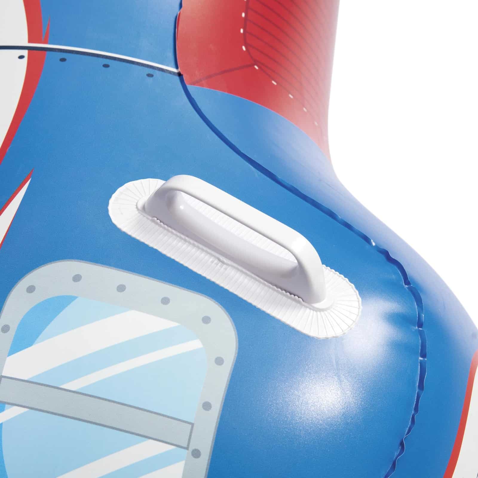 Su diseño innovador hace que los jóvenes pilotos puedan sentarse cómodamente sobre este vehículo hinchable.