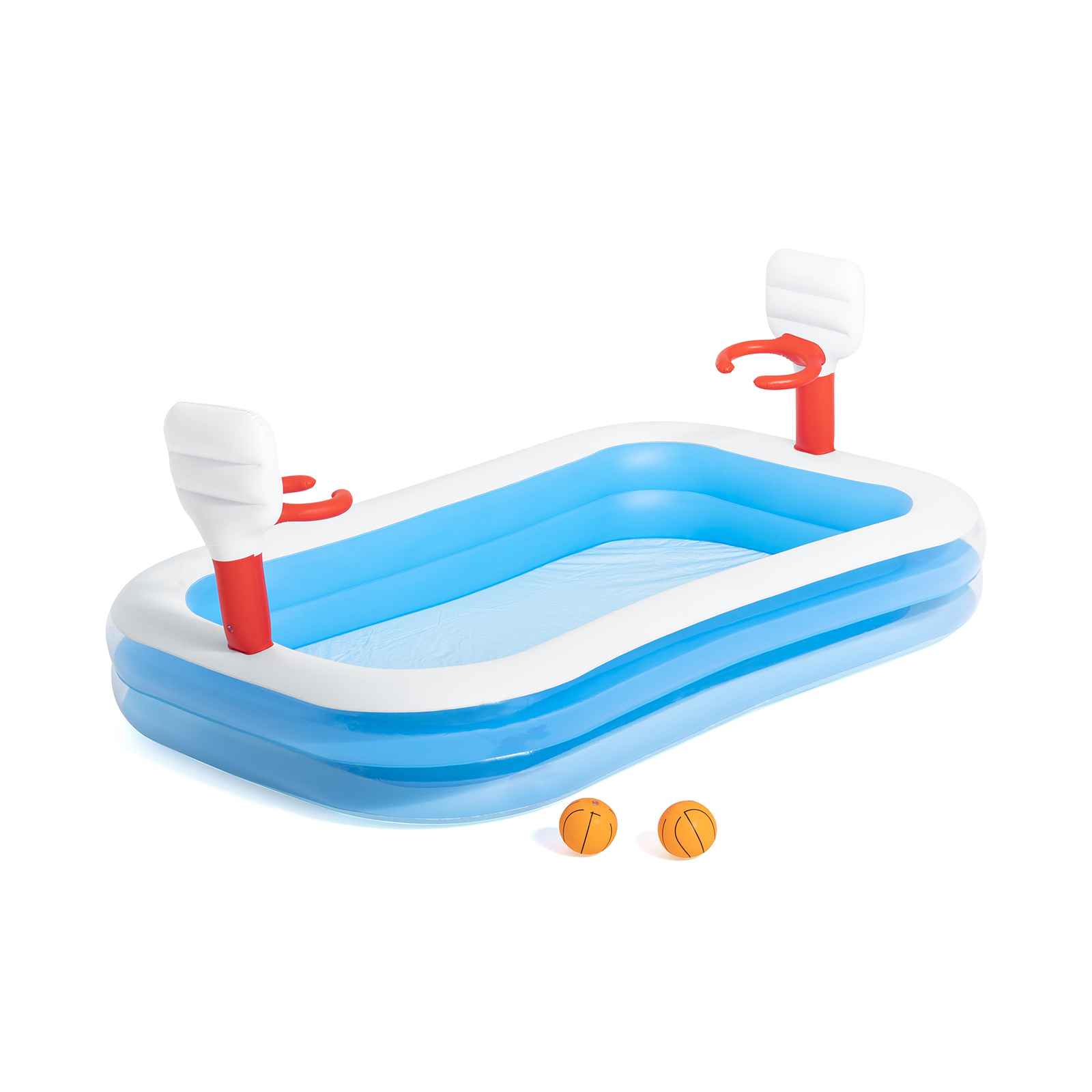 Contenido: 1 piscina de juegos, 2 pelotas de baloncesto, 1 parche de reparación.