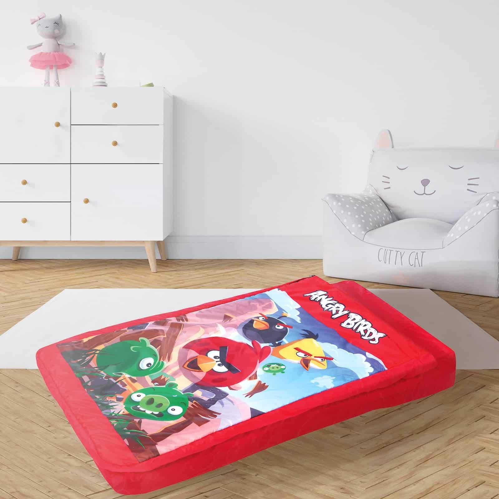 Contiene: una cama infantil hinchable modelo Angry Birds y un parche de reparación.