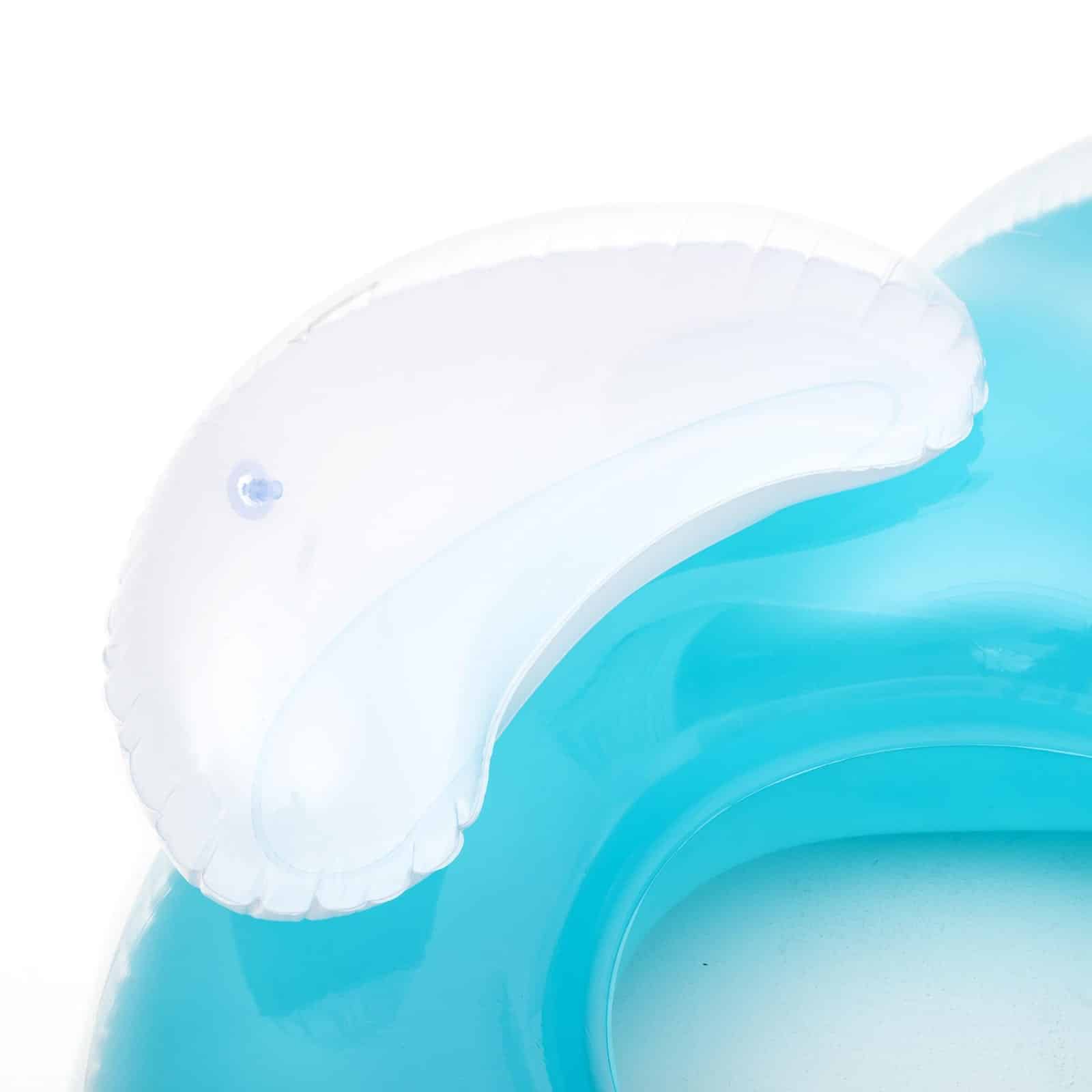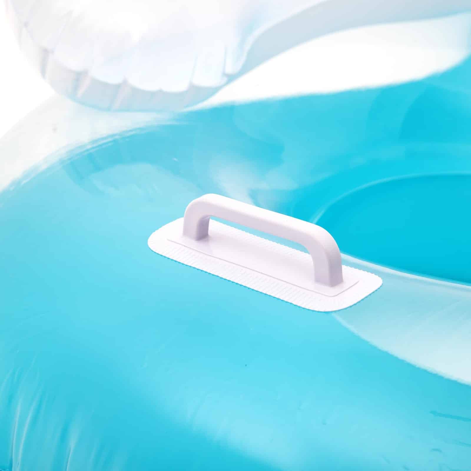 Diseñada para dos personas, este flotador de doble anillo también dispone de un cómodo reposacabezas para que puedas relajarte en la piscina o en la playa.