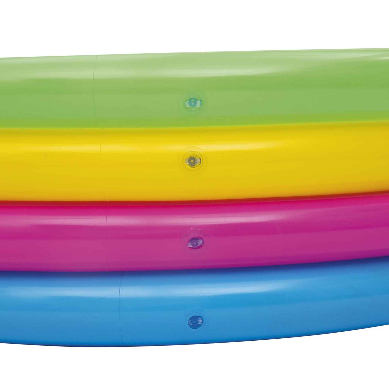 Esta piscina de juegos con los colores del arcoíris es el lugar ideal para que los peques chapoteen y se refresquen en los calurosos días de verano.