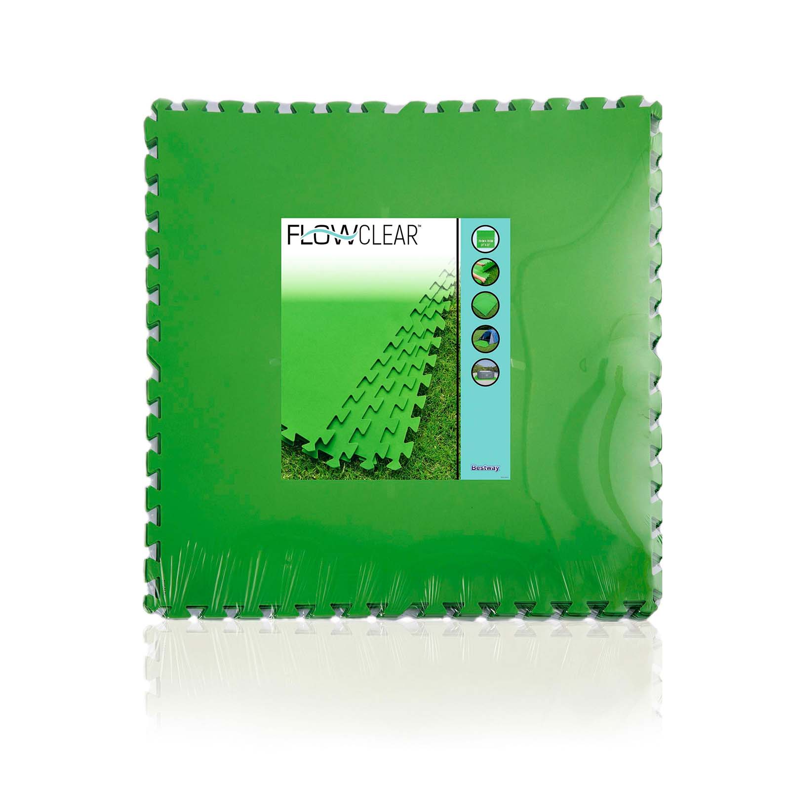 El protector para suelo de piscina Flowclear de Bestway® es una solución eficaz para preservar la base de tu piscina elevada frente al desgaste diario. Este conjunto incluye nueve láminas de polietileno de alta resistencia, cada una de 78×78 cm, que se ensamblan fácilmente como un puzzle, cubriendo hasta 5,47 m² de superficie.
