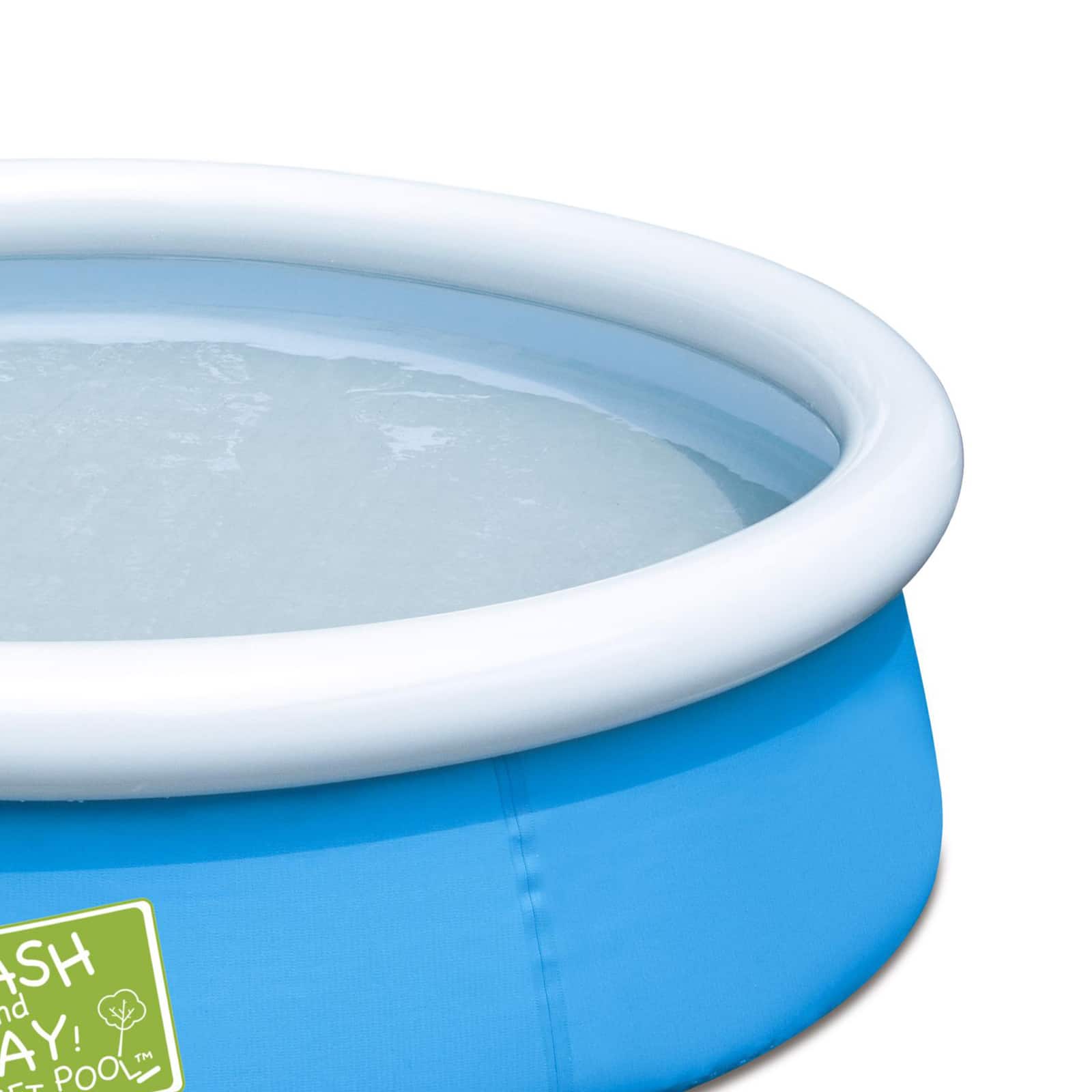 Se instala en cuestión de minutos en una superficie plana, ya que sólo hay que inflar el aro superior, el cuerpo de la piscina tiene un revestimiento que se levanta cuando se llena de agua.