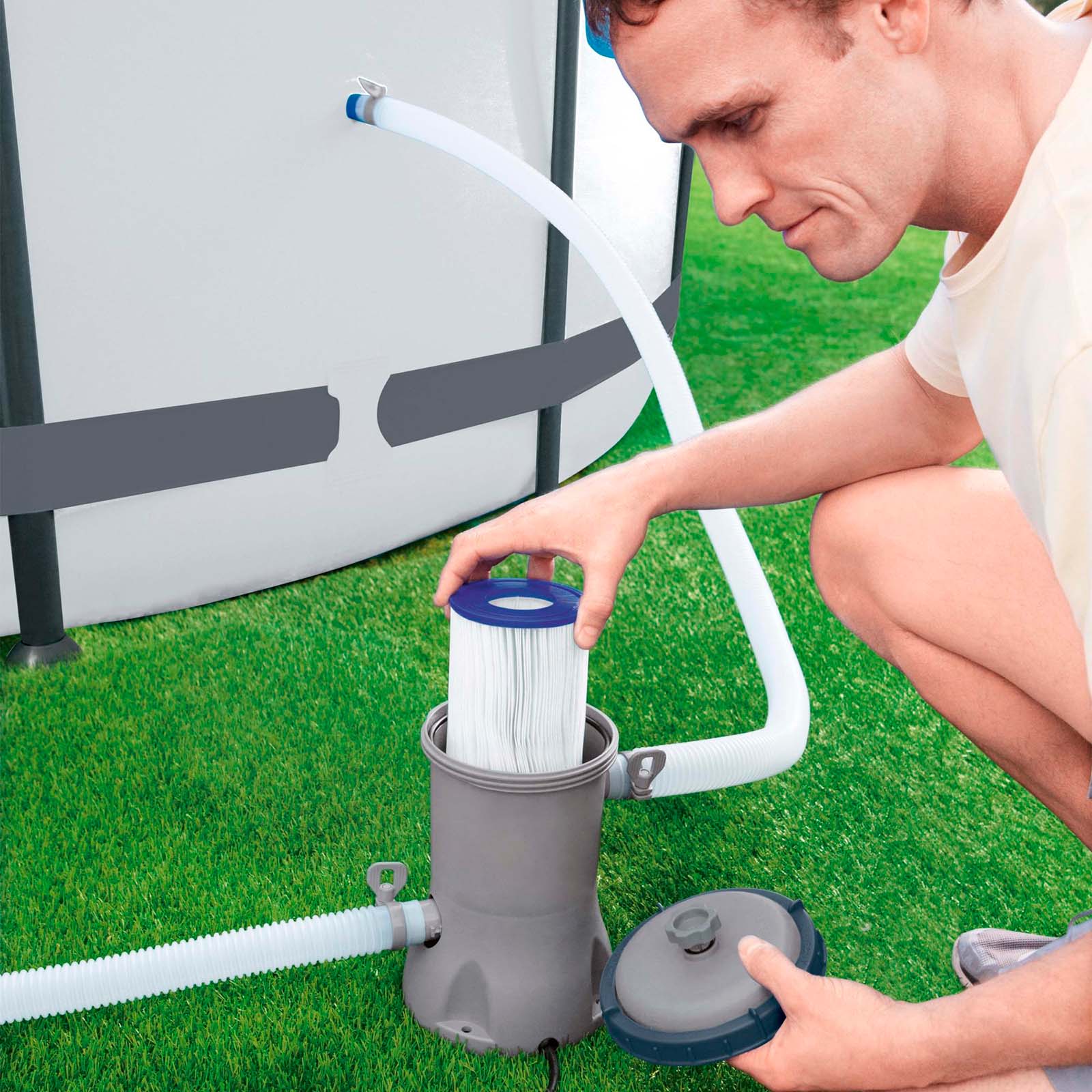La bomba de filtrado de la piscina mantiene el agua limpia mediante un sistema de circulación que bombea el agua a través de un cartucho de filtrado, para devolverla limpia a la piscina.