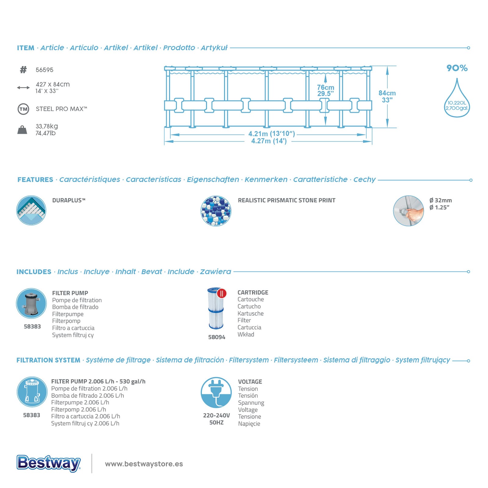 Set piscina desmontable Steel Pro MAX de 4.27 m x 84 cm de Bestway