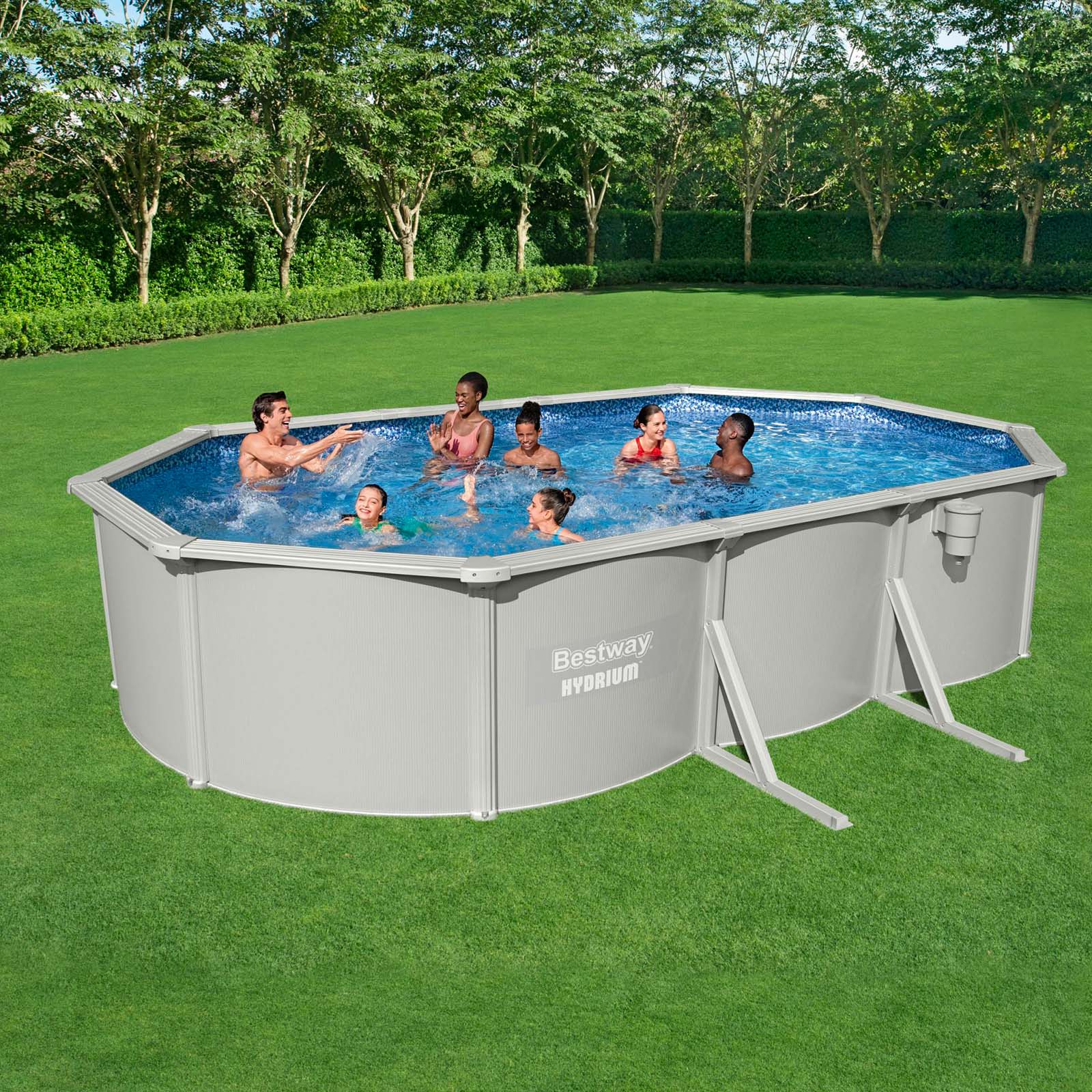 Conjunto de piscina sobre superficie con pared de acero Hydrium de Bestway de 6.10 m x 3.60 m x 1.20 m