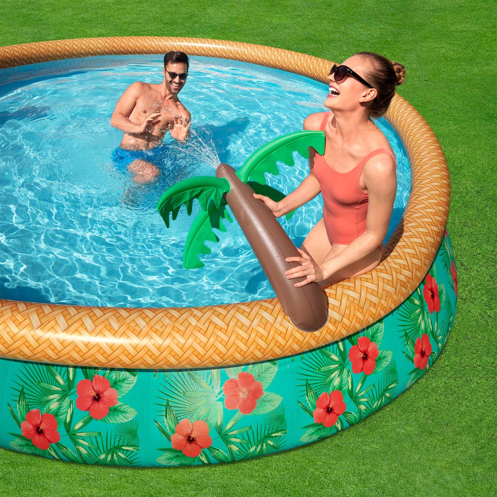 El Conjunto de Piscina Palmeras del Paraiso es un cambio divertido y moderno de la tradicional piscina Bestway® Fast Set™ y te permitirá estar listo para un día de piscina en un pispás.