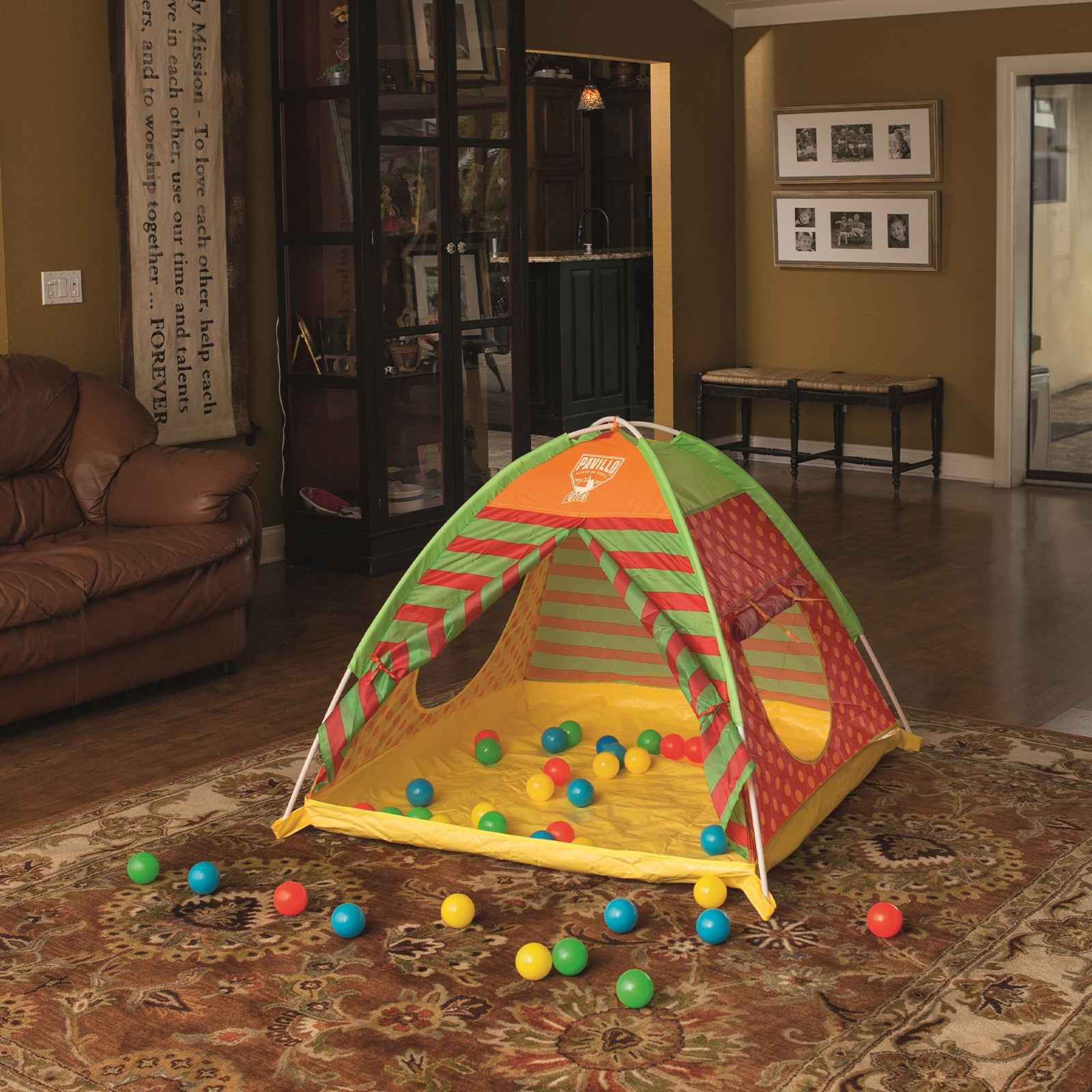 Fácil de montar. Ideal para uso en interiores. Incluye 40 bolas multicolores.