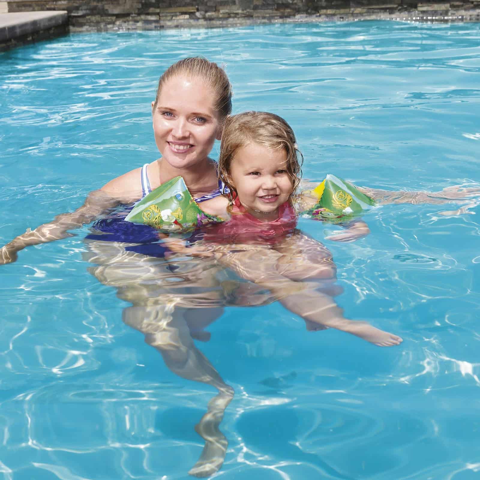 Los manguitos cuentan con 2 diseños variados de colores brillantes de Mickey y sus amigos de la casa de Mickey Mouse, con 2 cámaras de aire para una mayor flotabilidad.