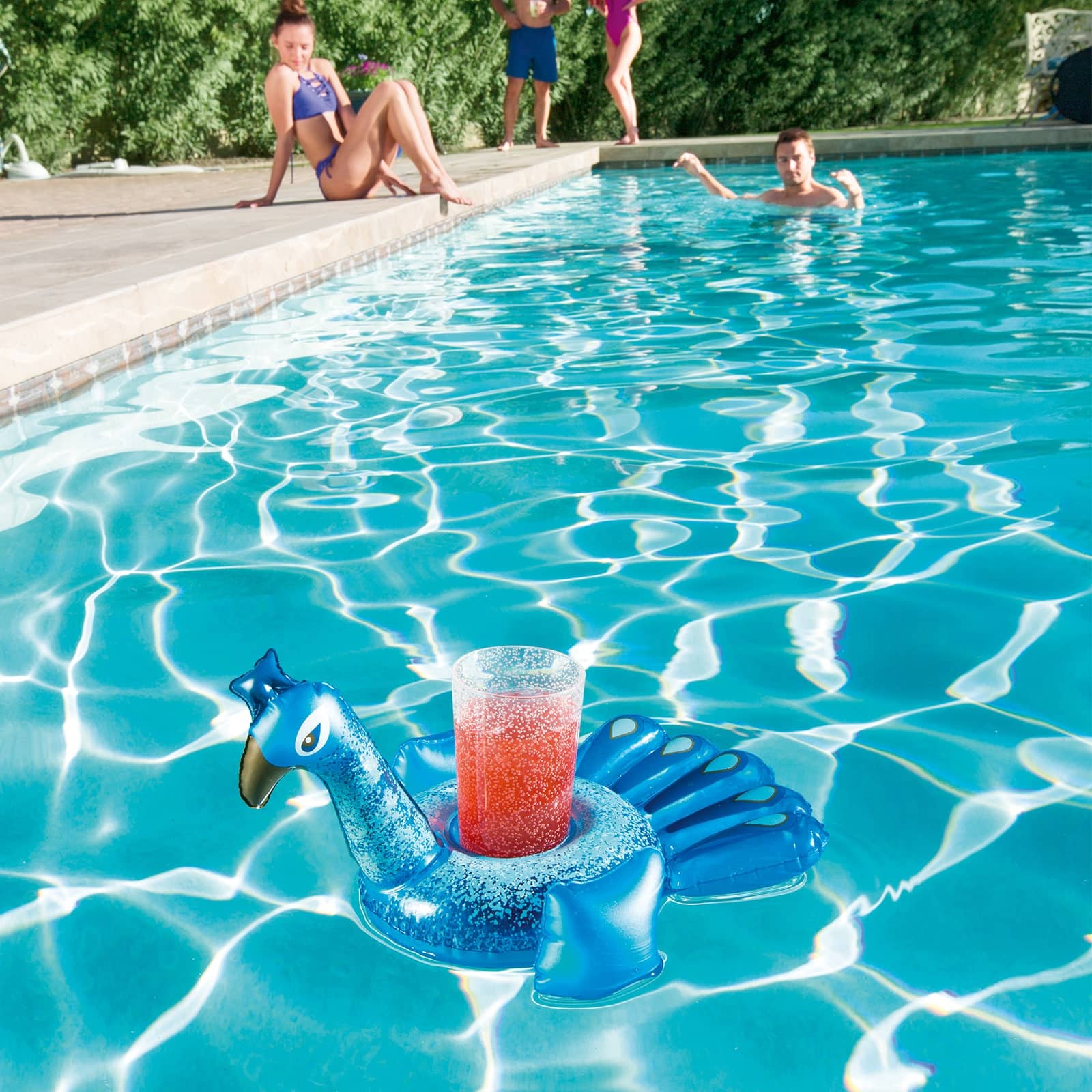 Con los posavasos Flamenco y Pavo real tus fiestas en la piscina serán únicas.