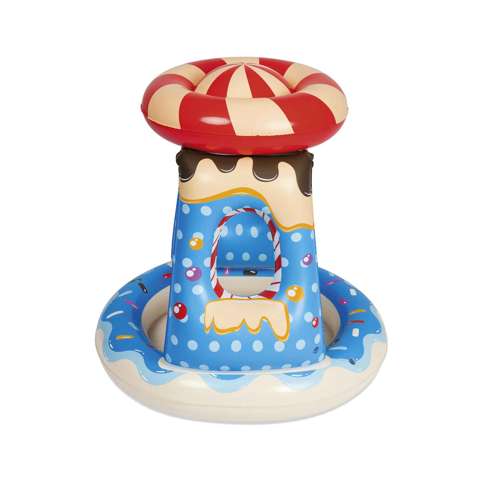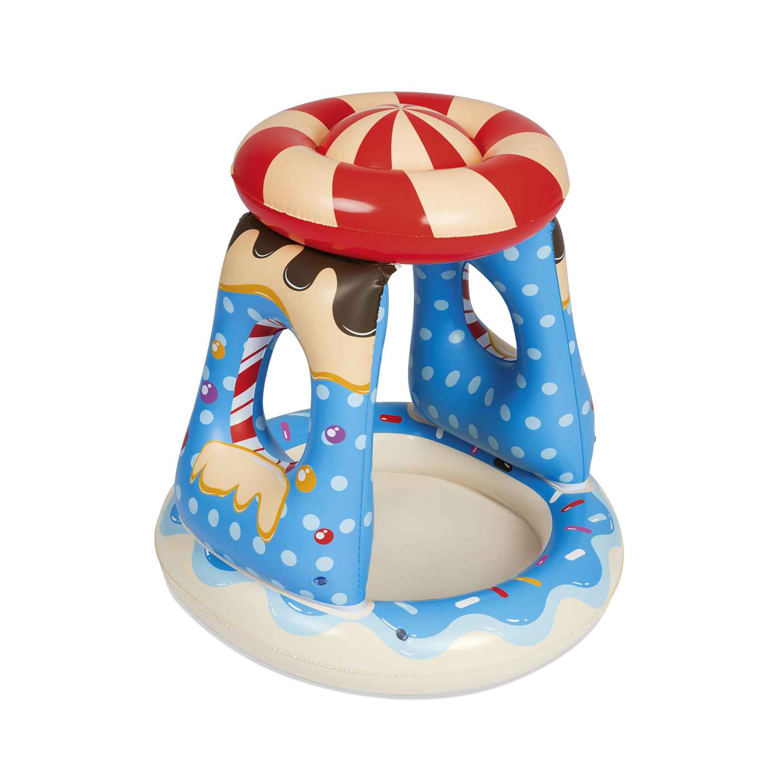 El parasol hinchable es muy práctico para los días más calurosos y tiene forma de caramelo.
