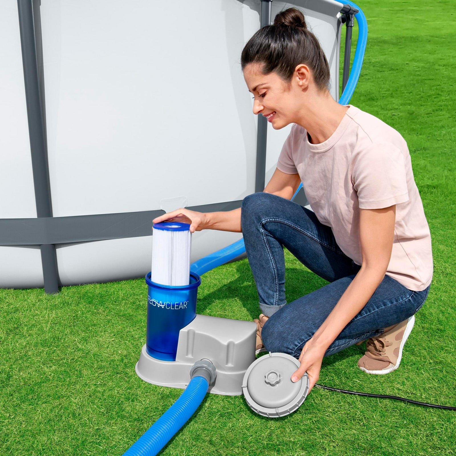 Con todo lo que necesitas para mantener el agua de tu piscina impecable, este kit de bomba Flowclear es imprescindible.
