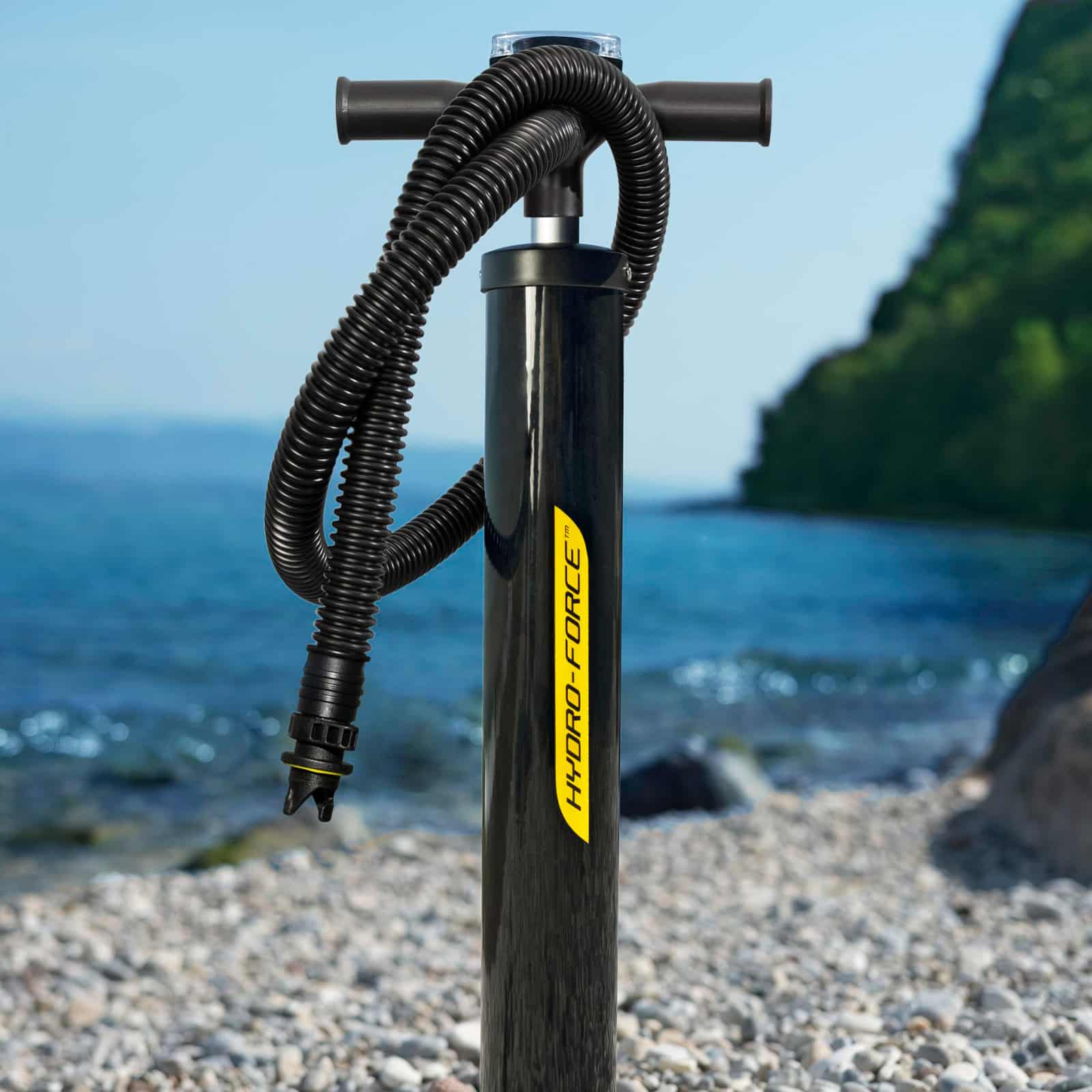 ¡Una vez que estés listo para usar tu tabla, simplemente infla con la bomba de mano incluida y estarás listo para un día extraordinario en el agua!