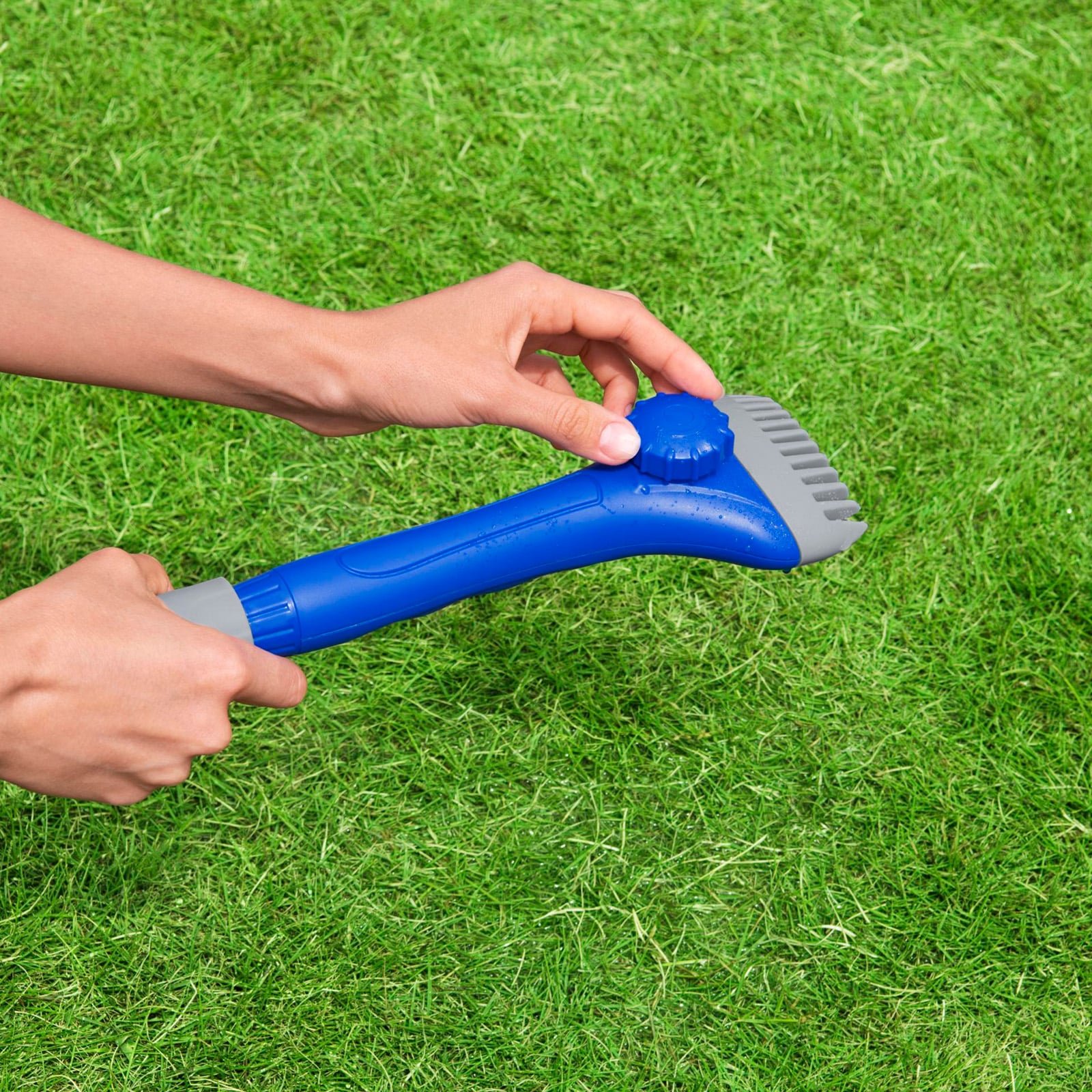 El AquaLite se conecta fácilmente a los extremos de una manguera de jardín estándar mediante una válvula de conexión rápida, lo que permite que un chorro de agua concentrado quite más partículas del papel filtrante en menos tiempo del que puede hacerlo tu manguera de jardín por sí sola.