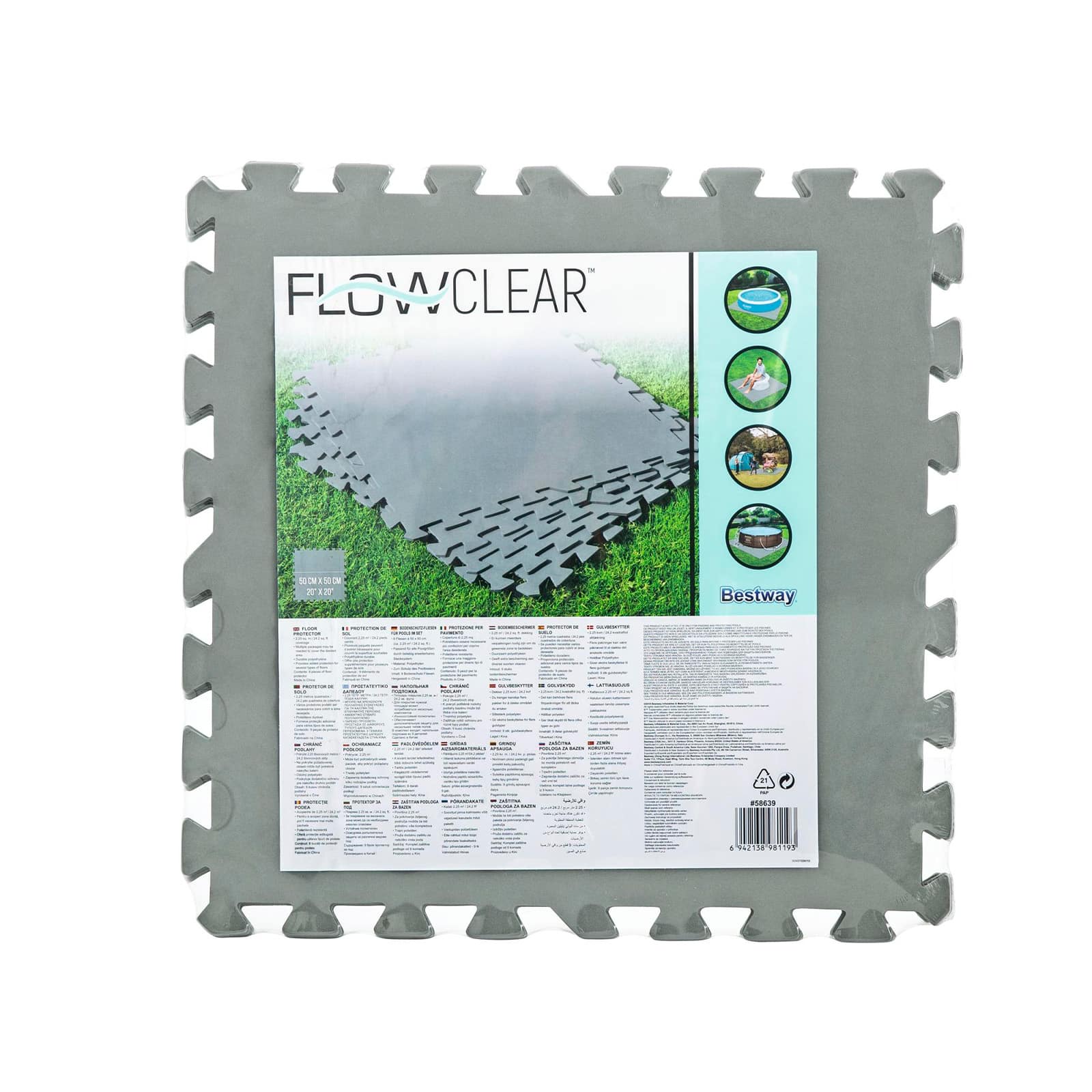 El protector de suelo Flowclear 50×50 cm está diseñado para prolongar la vida útil de tu piscina sobre superficie y preservar el estado del suelo que la rodea.