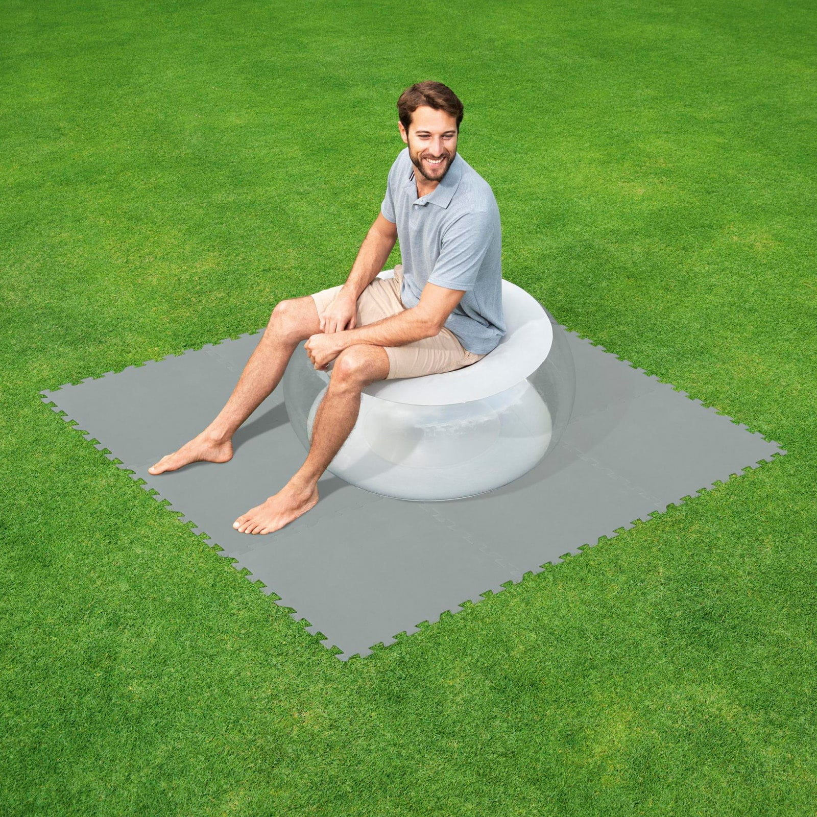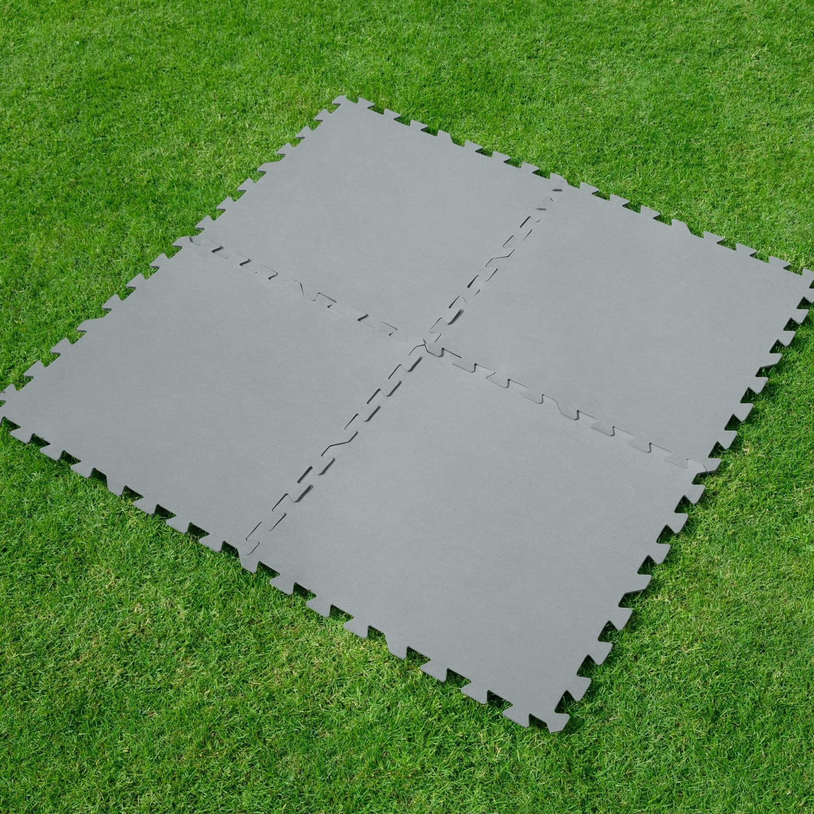 Set de 9 piezas de polietileno de alta resistencia (50x50 cm cada una) que cubren hasta 2,25 m². Ideal para proteger suelos bajo piscinas desmontables u otras zonas expuestas a humedad.