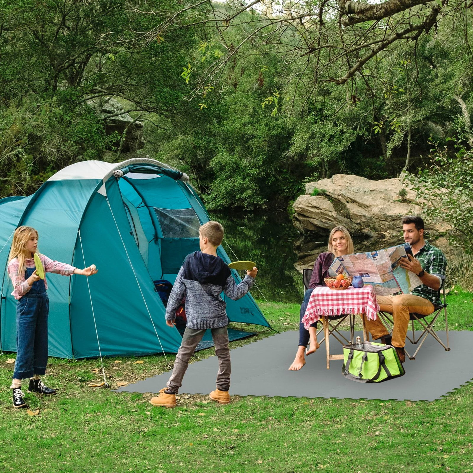 Este set incluye 9 placas de polietileno resistente que, ensambladas, cubren una superficie total de 2,25 metros cuadrados, ofreciendo una base sólida, limpia y segura.