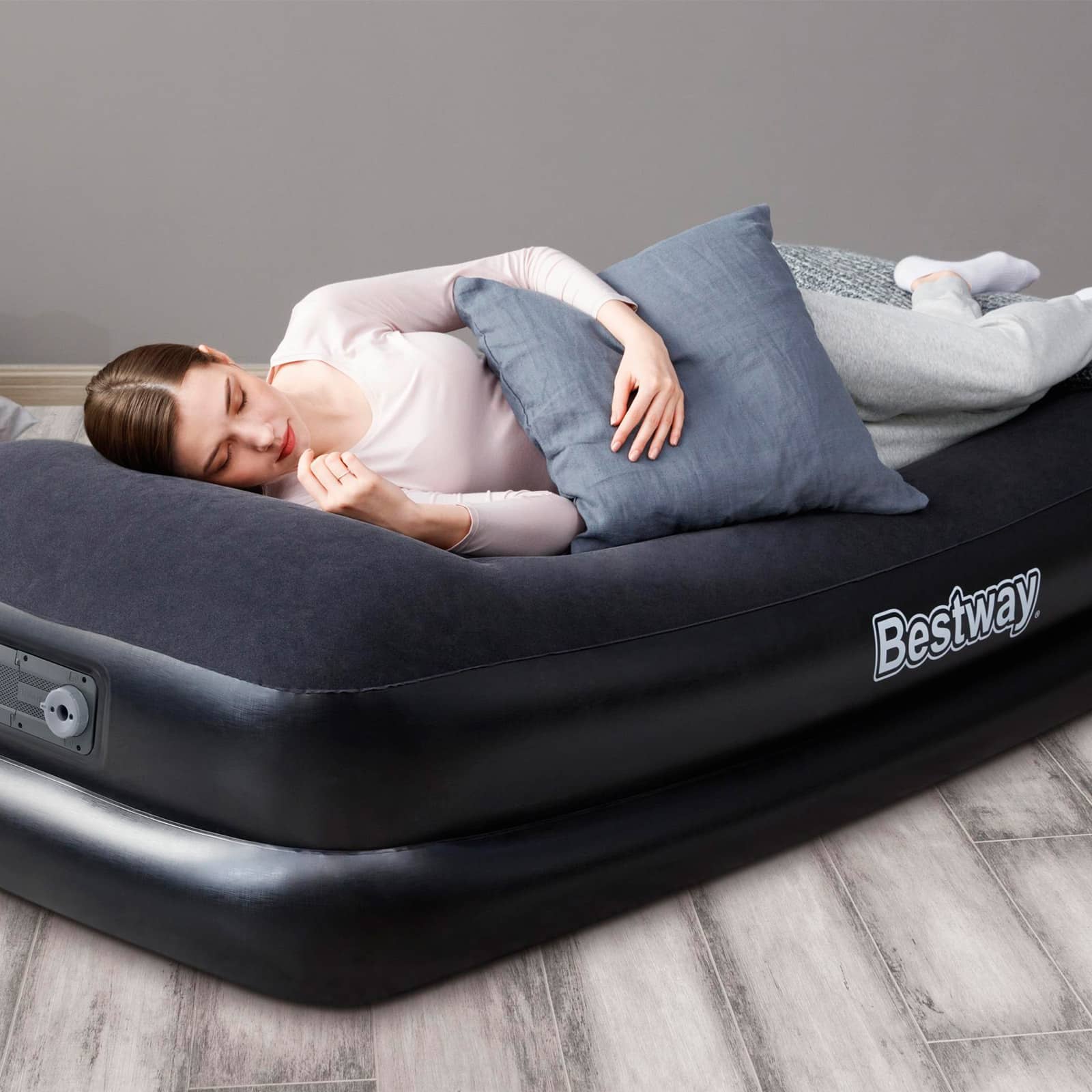 Disfruta de un descanso cómodo y sin complicaciones con este colchón inflable individual de 191 x 97 x 46 cm. Cuenta con bomba eléctrica integrada, almohada y superficie tratada contra bacterias. Ideal para invitados o escapadas.
