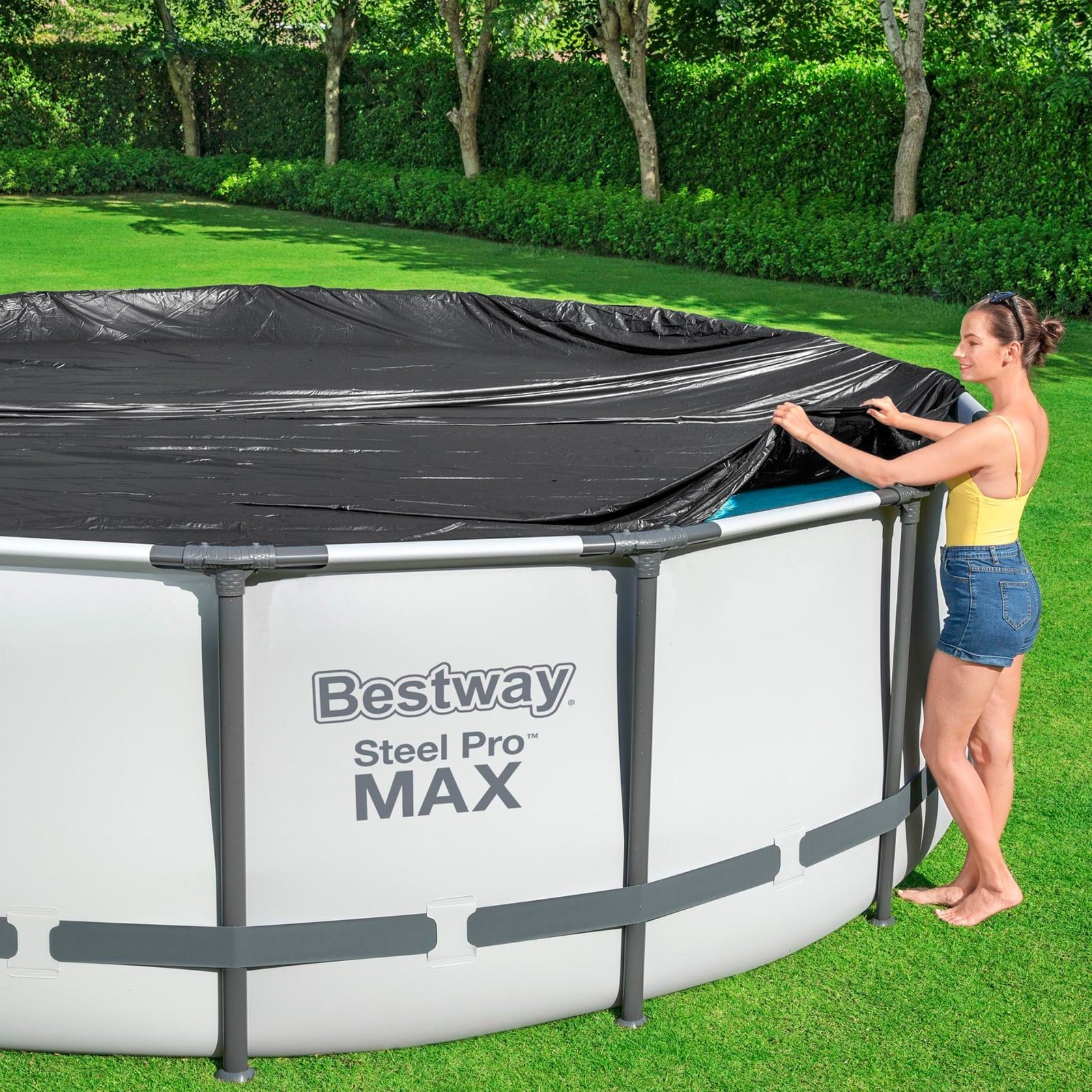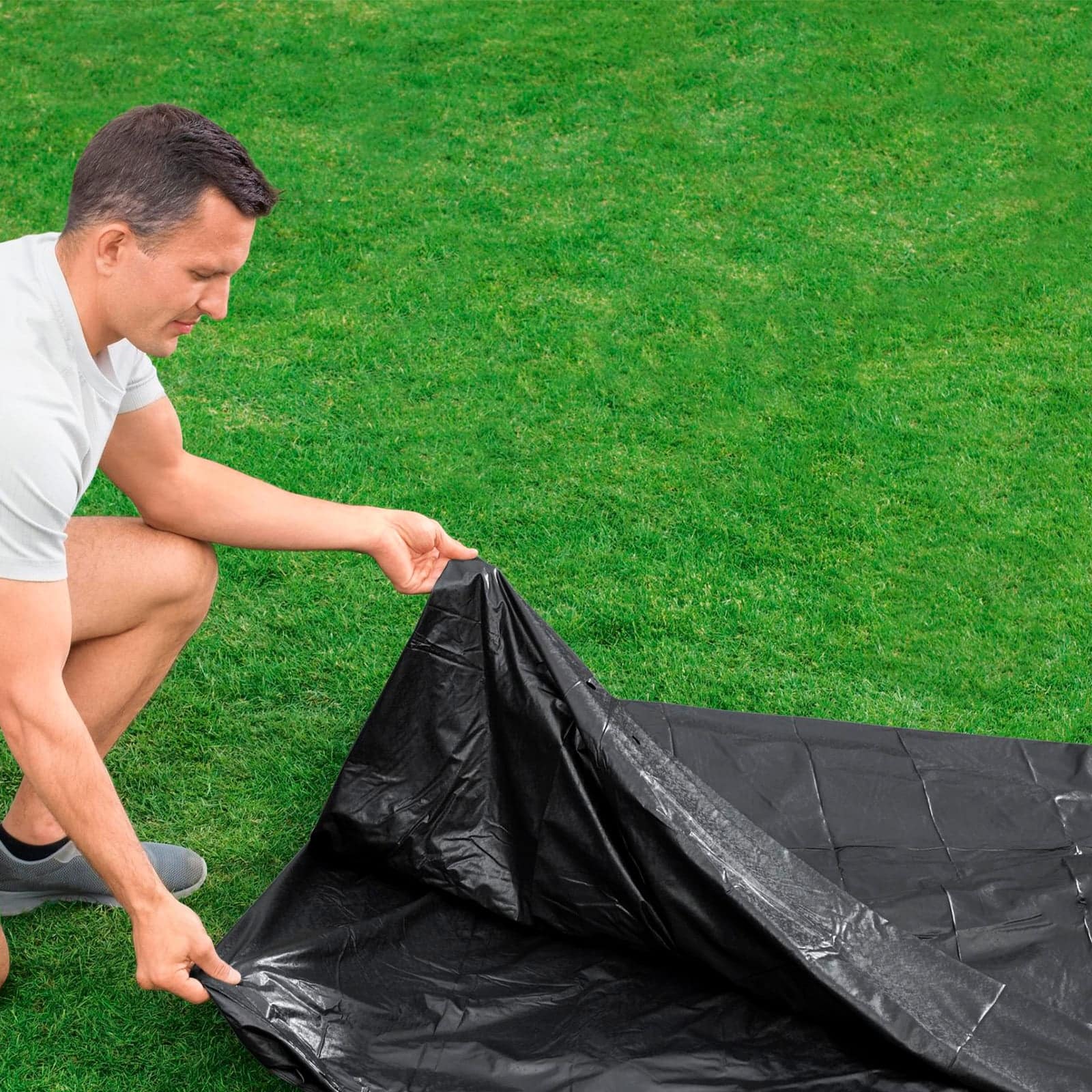 La cubierta de piscina es fácil de instalar, extremadamente duradera e incluye cuerdas para asegurarla a la piscina.