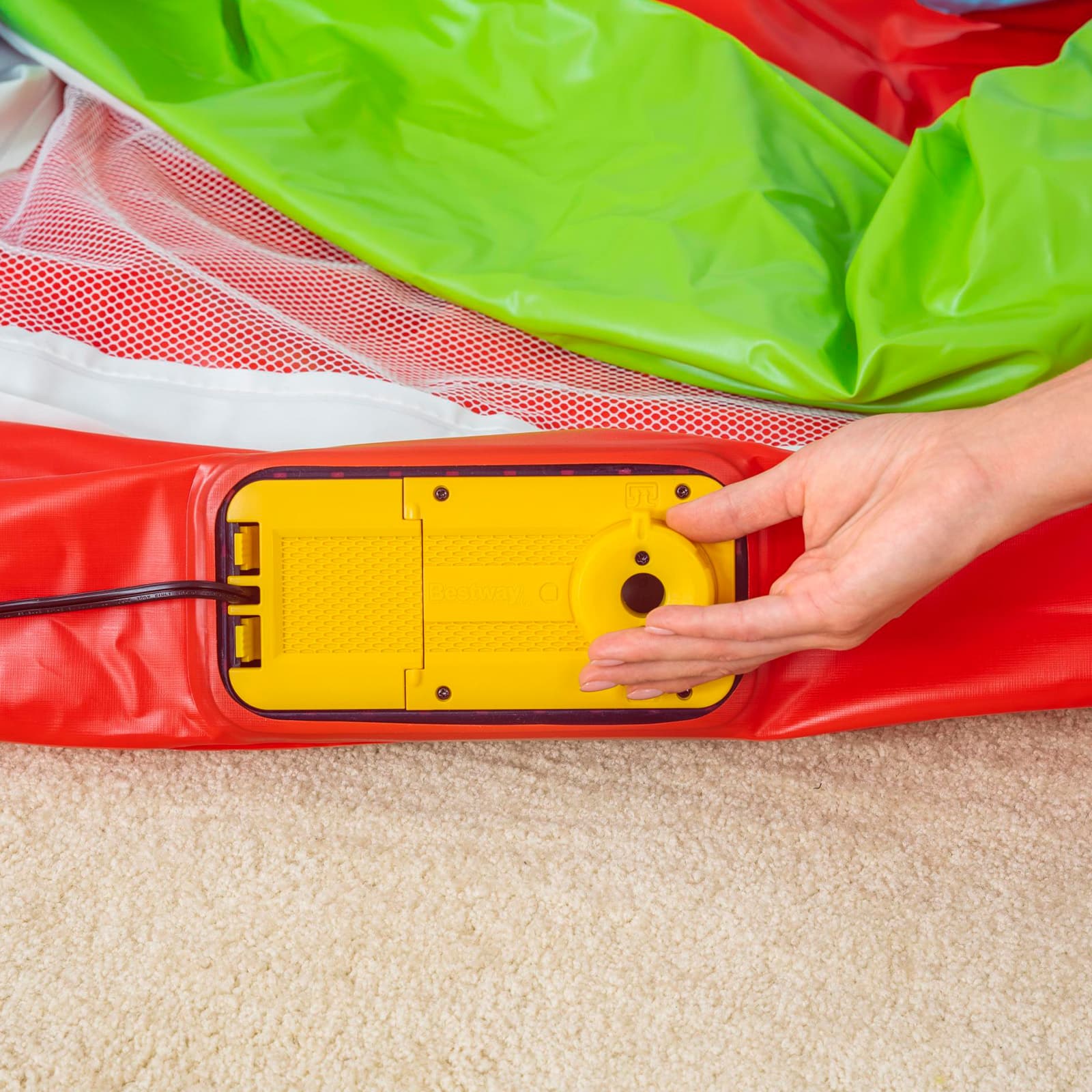 El parque inflable Bouncesational anima a los niños a usar su imaginación en los ratos de juego a la vez que desarrollan las habilidades necesarias. Las paredes de malla brindan visibilidad a los padres en todo momento, mientras que el acceso único permite que los niños entren y salgan del parque fácilmente. La bomba incorporada también permite el desinflado automático, para que pueda recoger el parque y guardarlo rápidamente.