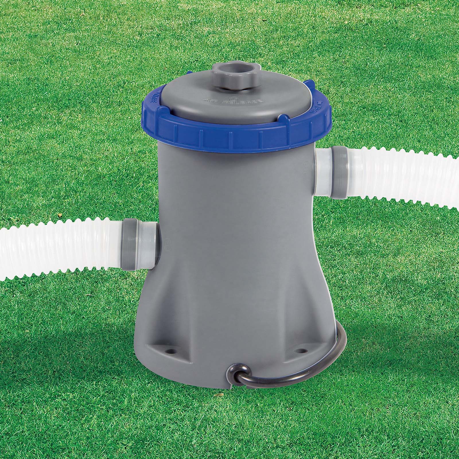Sumérgete en un agua cristalina. Esta piscina incluye una depuradora de cartucho y un dispensador de productos químicos ChemConnect™. Con el pack conseguirás un tapiz de suelo para mayor protección de tu producto y un kit de limpieza Splasher, con termómetro, recogehojas, pértiga, cepillo y estuche para el testeo del cloro.