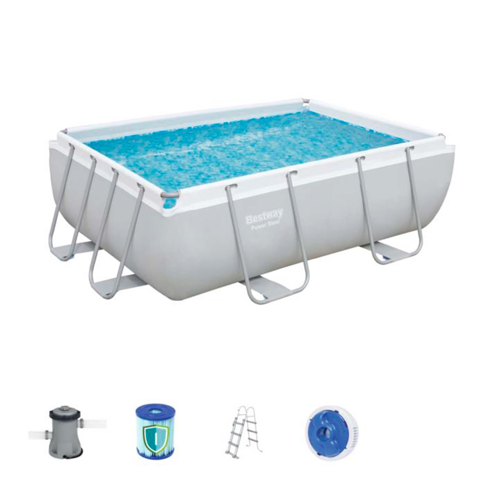 Pack Piscina 56409 power steel rectangular 287 x 201 x 100, Tapiz Suelo, Kit Iniciación