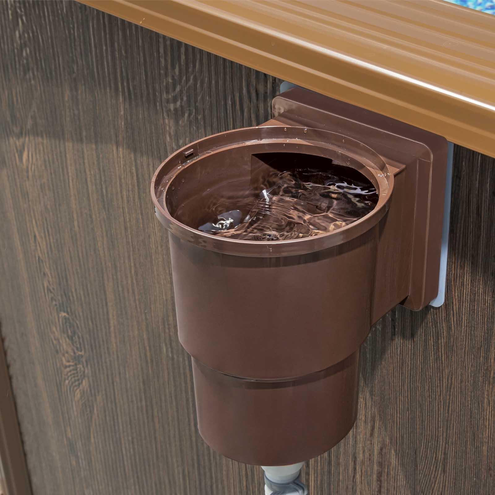 Cuenta con Realistic Prismatic Stone™. Un revestimiento exterior muy realista que simula ser una pared de madera veteada, mientras que por dentro tiene un fondo de piscina azul intenso.