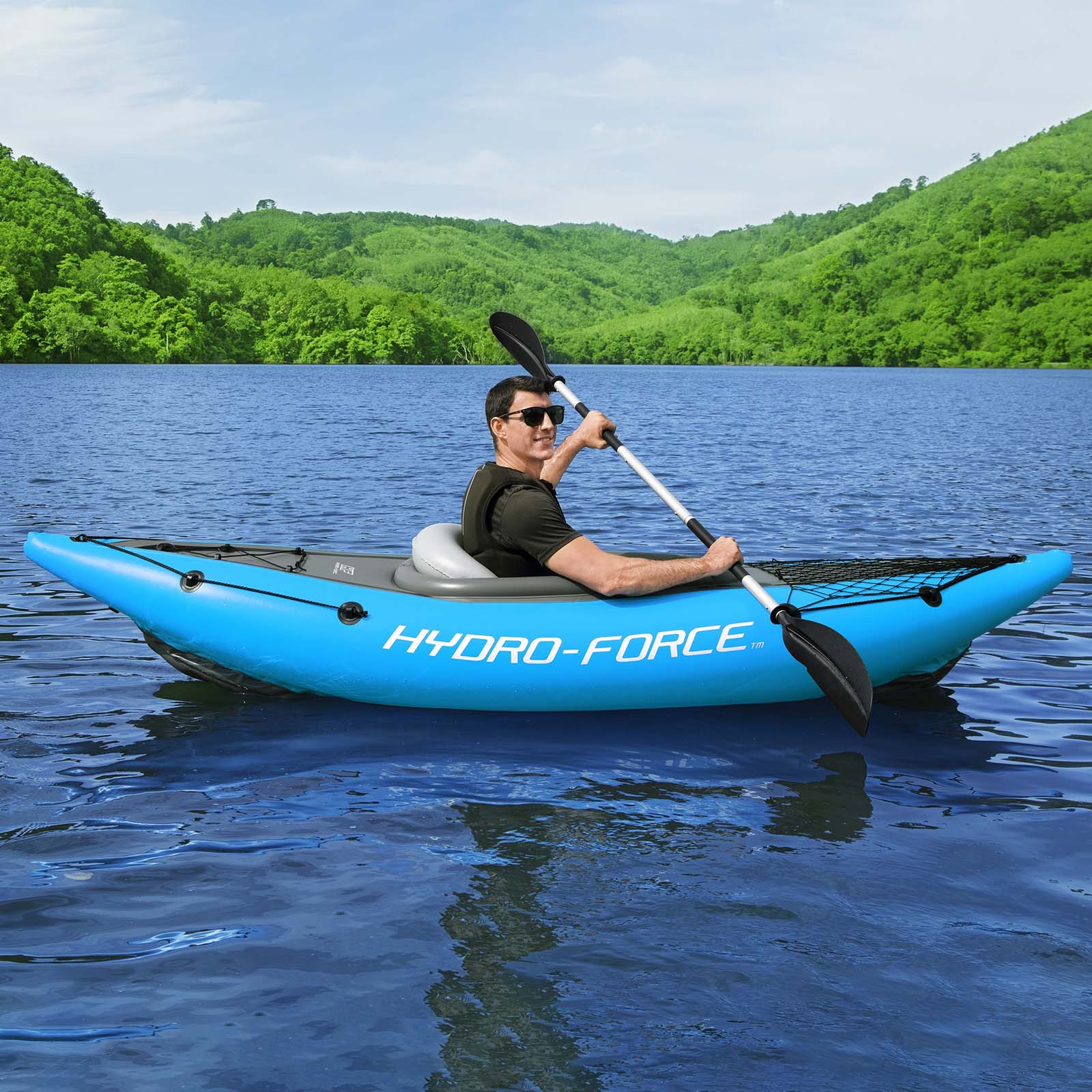 El kayak hinchable Hydro-Force™ Cove Champion X1 viene con todo lo necesario para pasar un gran día surcando las aguas: un remo, una bomba y un parche.
