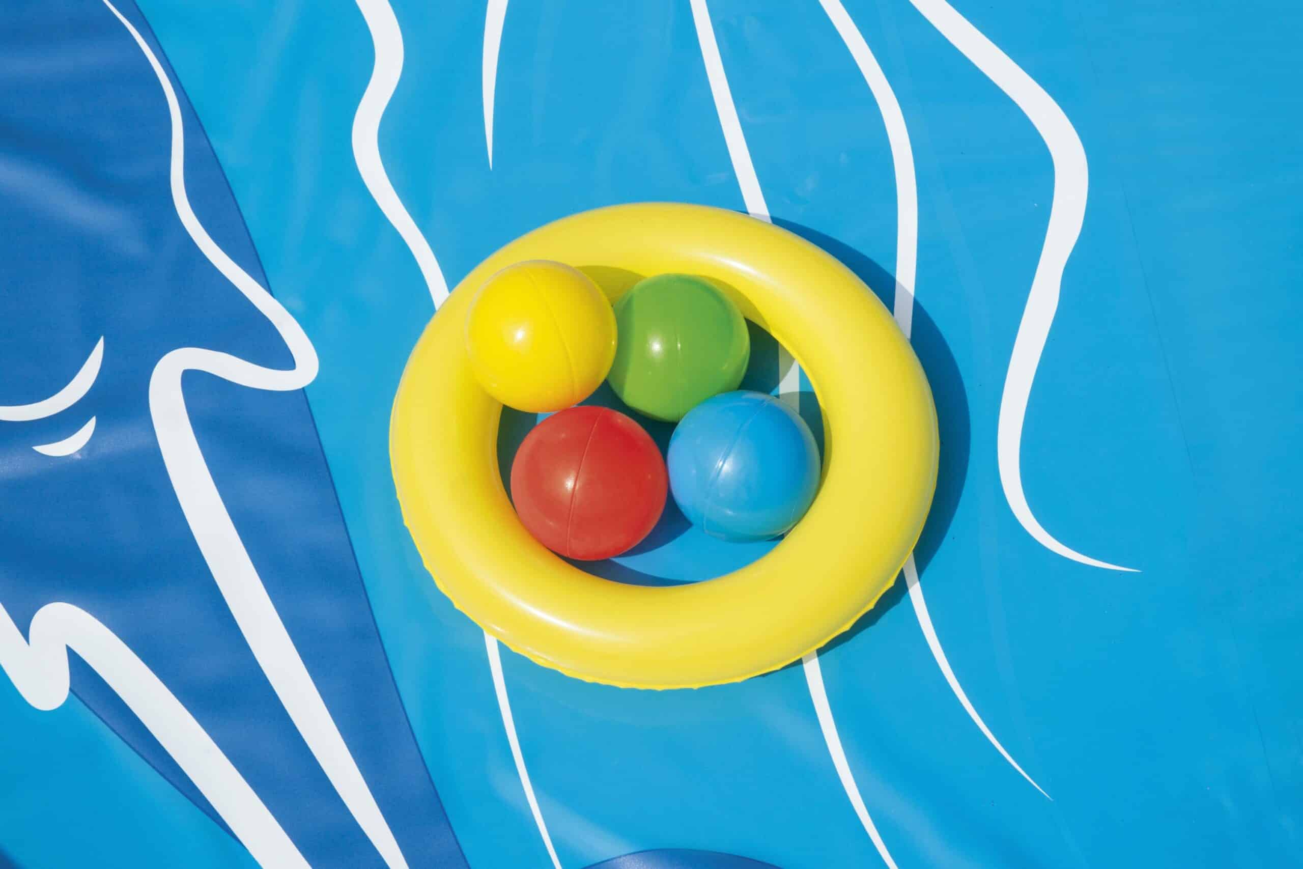 Contenido: 1 centro de juegos, 1 blobz, 1 anillo hinchable, 4 bolas para jugar, 1 parche de reparación.