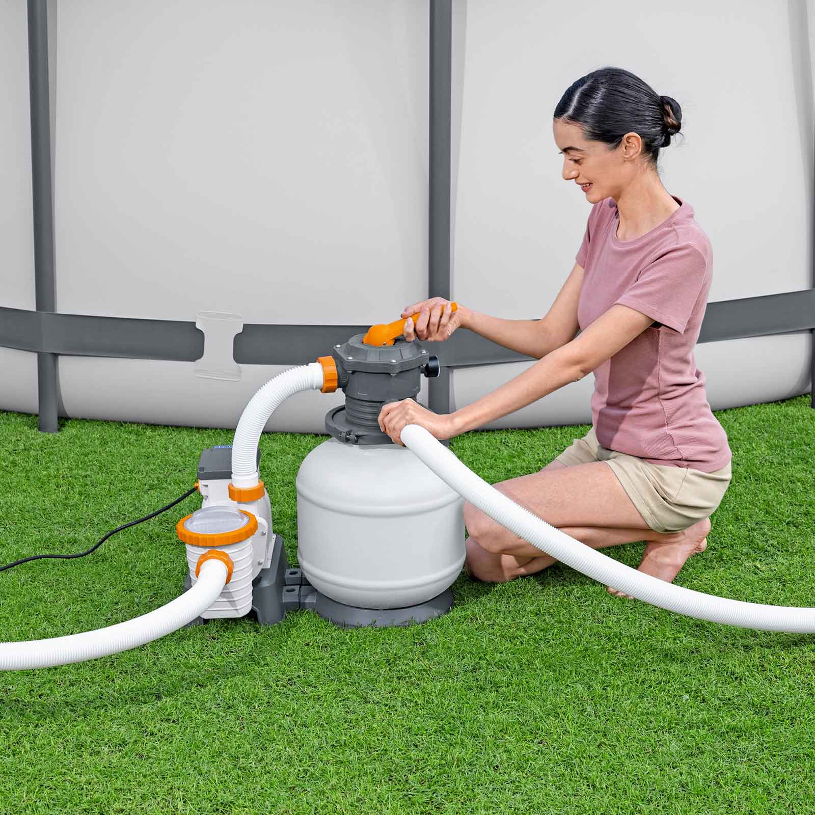 Presume de agua limpia y cristalina durante todo el verano con la depuradora de arena para piscina Flowclear™. La decisión más ecológica para el agua de tu piscina porque funciona con un depósito de arena de sílice por el que pasa el agua, filtrando toda la suciedad y dejándola perfecta para el baño sin generar residuos contaminantes.