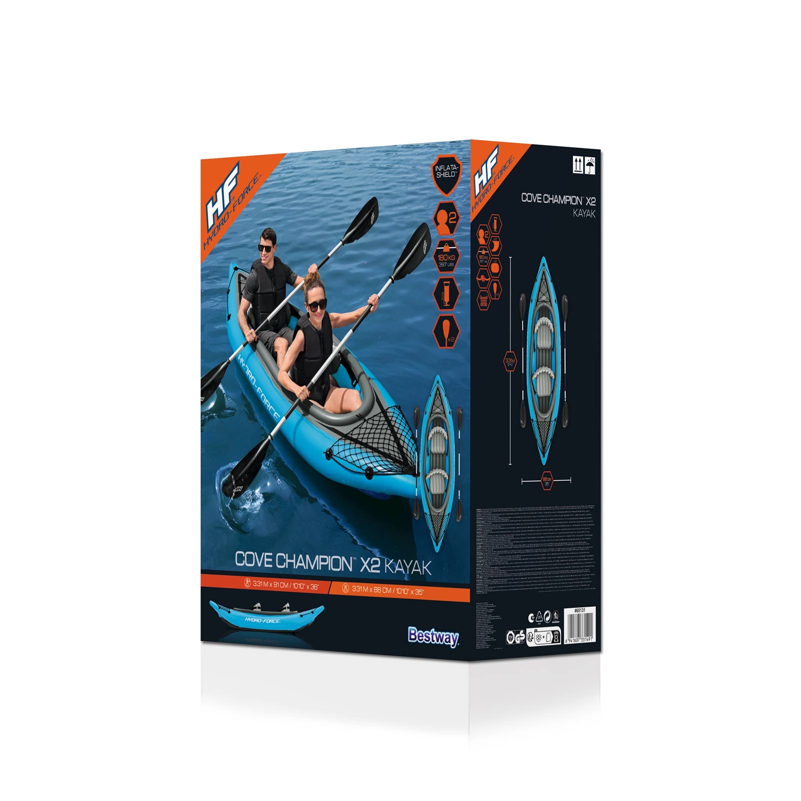 El kayak Hinchable Hydro-Force™ Cove Champion™ X2 viene con todo lo necesario para pasar un gran día surcando las aguas.