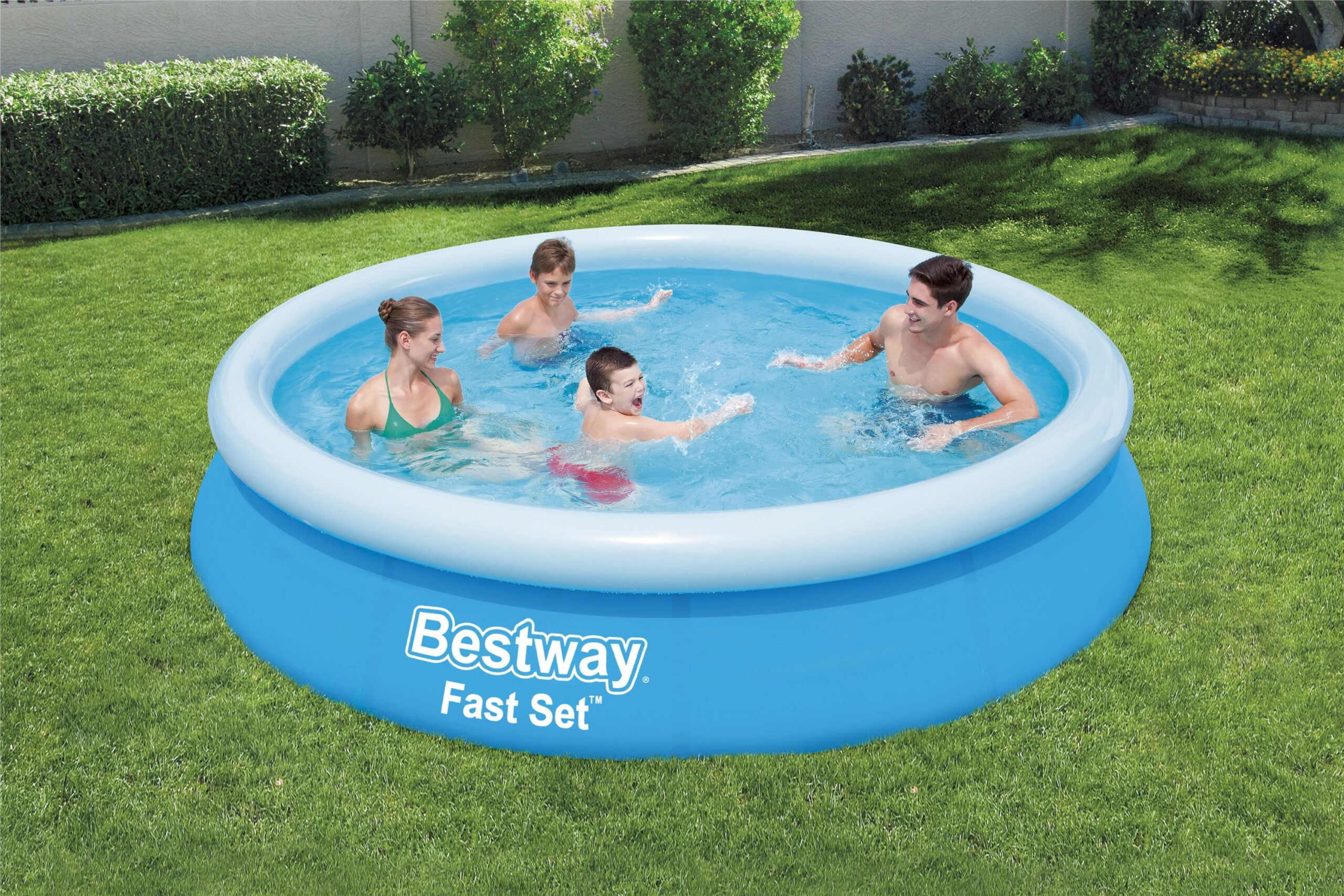 La piscina Fast Set ™de Bestway es una opción perfecta para toda la familia. Se instala en unos pocos minutos sobre una superficie plana, quedando sólo el anillo superior inflado.