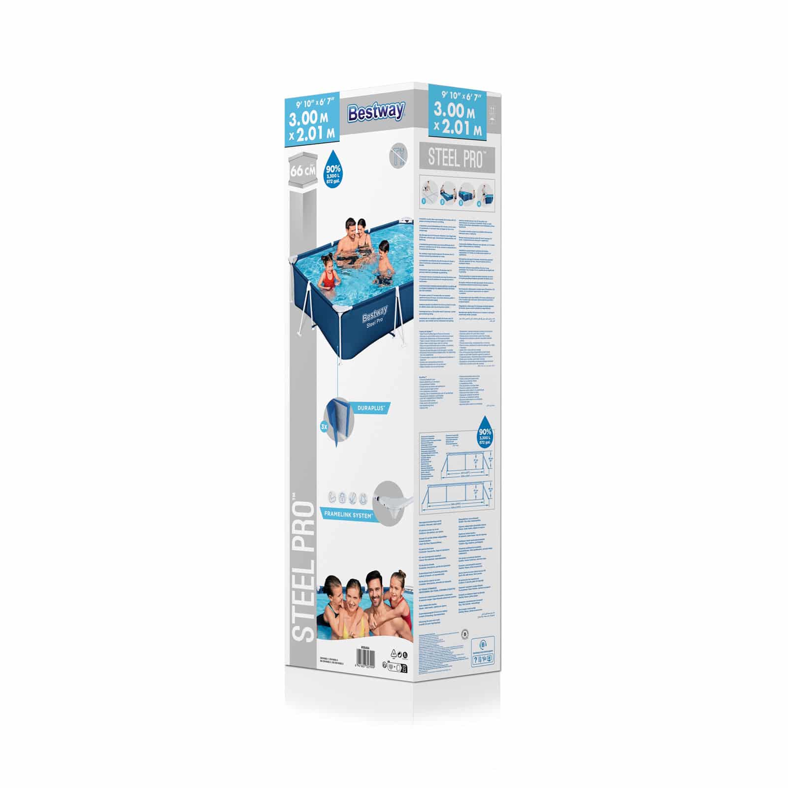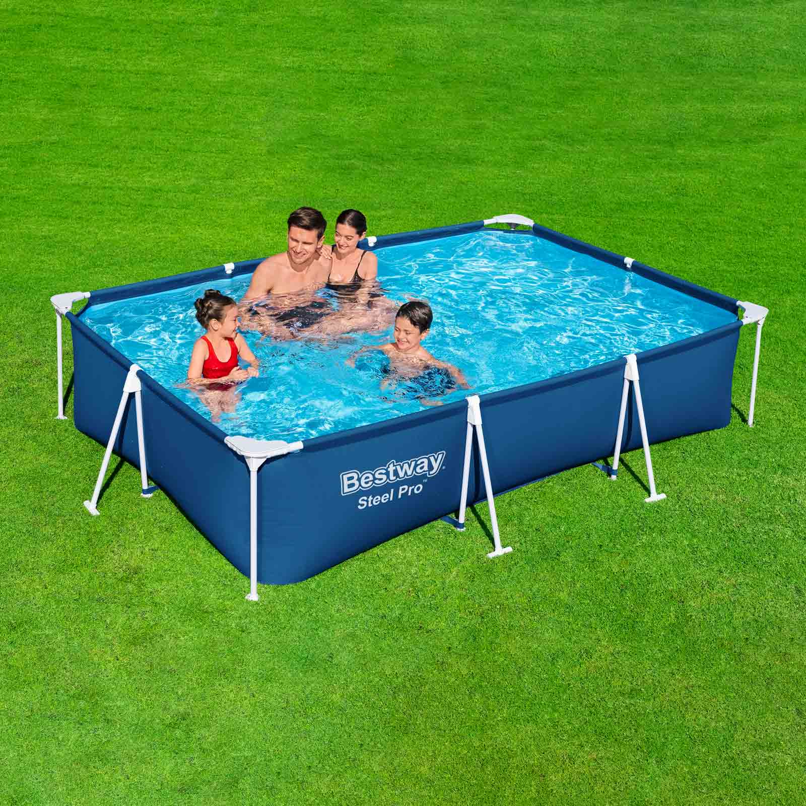 | Nombre | Piscina Desmontable Rectangular Bestway Steel Pro 3,00 m x 2,01 m x 66 cm | Piscina Steel Pro rectangular 3.00m x 2.01m x 66cm con bomba de filtrado de 1249L |