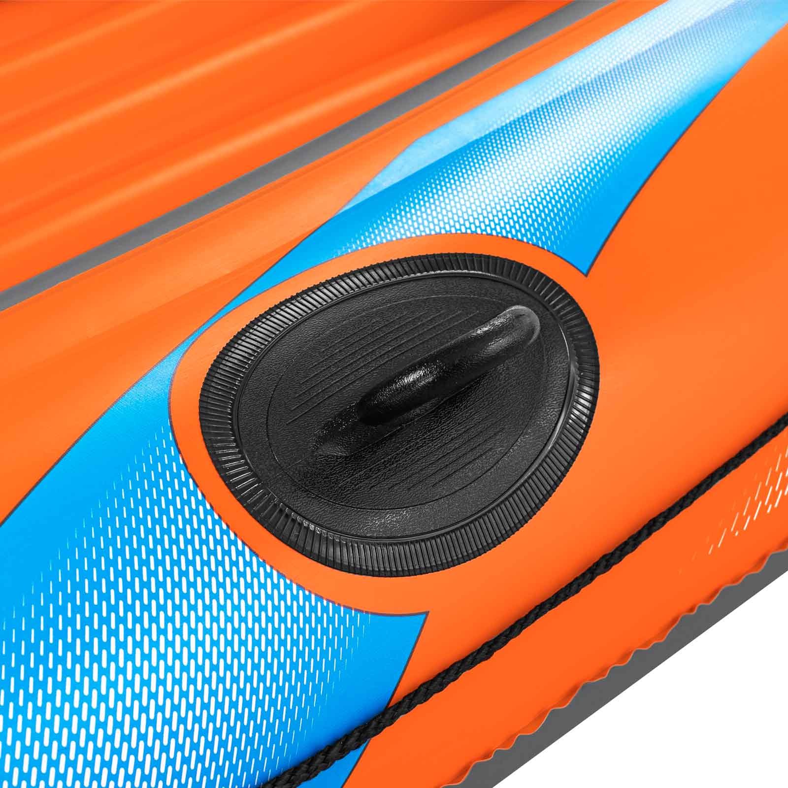 Viene con una cuerda de sujeción alrededor de la embarcación con ojales que te permitirá atracar el bote y un asa de alta resistencia para poder transportarla con facilidad.