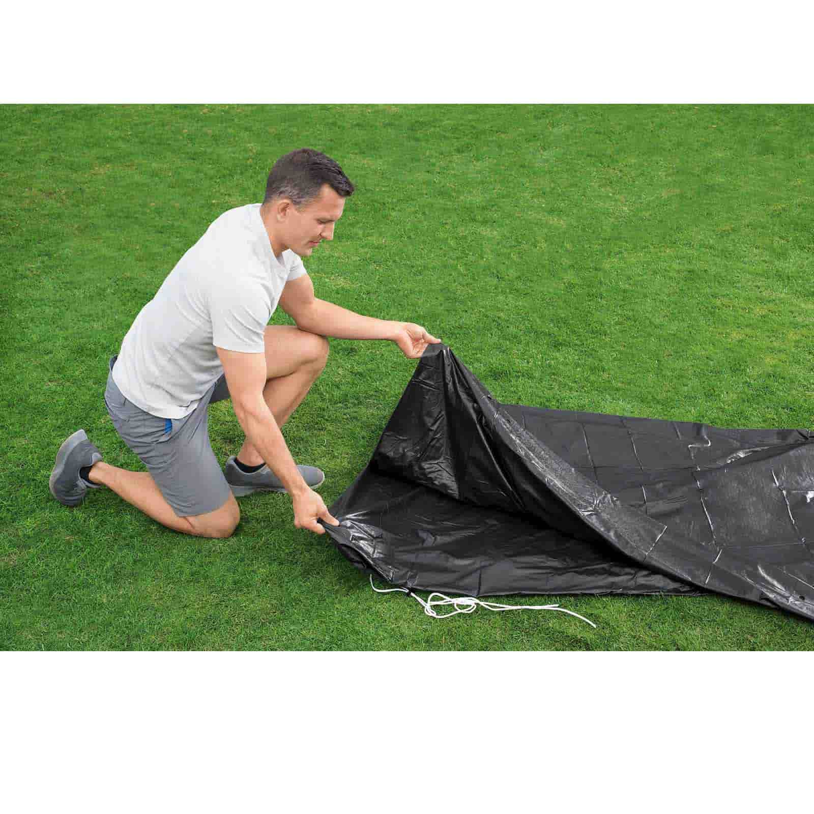 Además, tiene una cuerda integrada en el revestimiento de la funda para que puedas ajustarla a la piscina. Así, estará bien protegida y no se volará, aunque se levante viento.