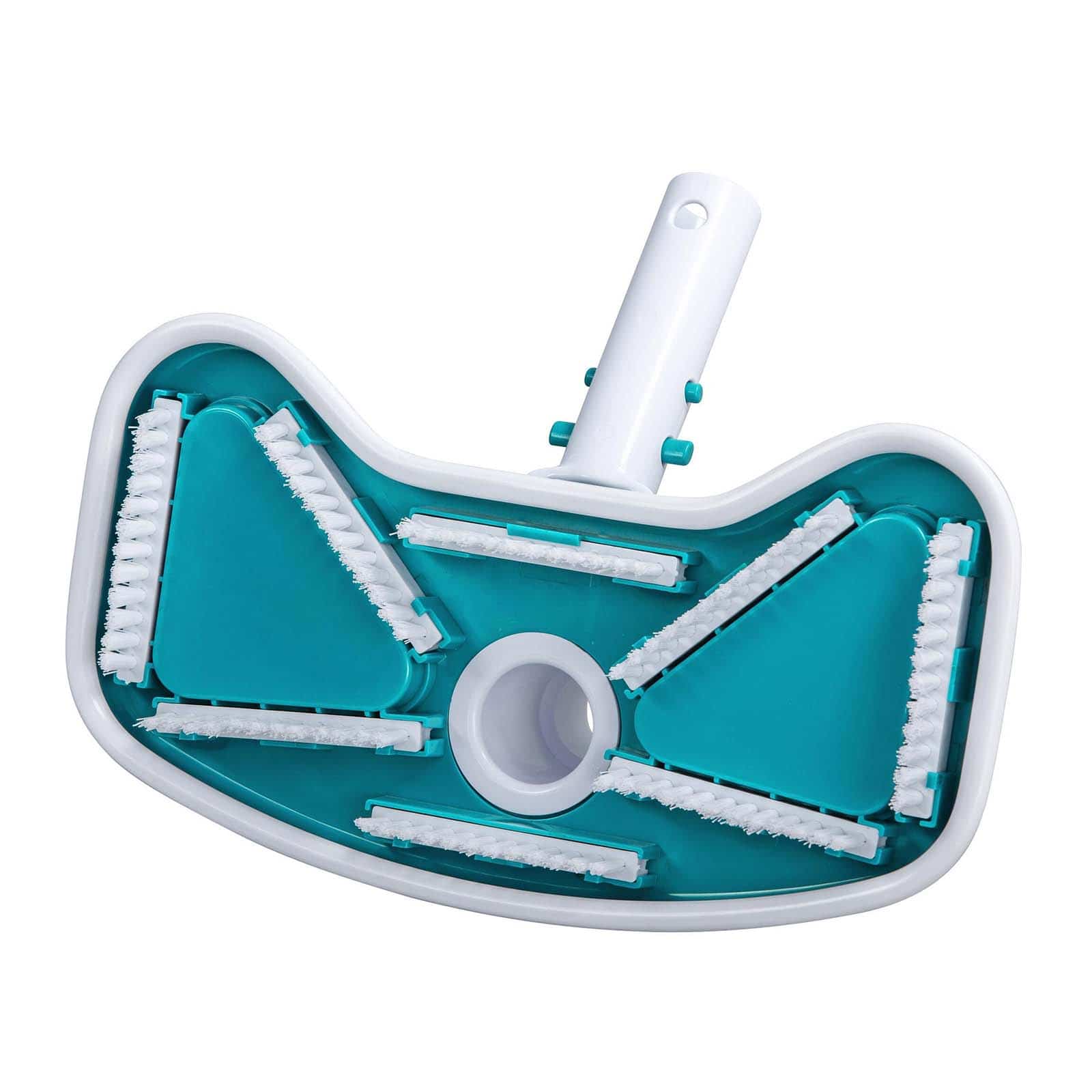 Tiene cepillos alrededor de los bordes para eliminar las algas del fondo de la piscina y un cabezal pequeño que te permite limpiar los rincones y zonas de difícil acceso. Esas donde la suciedad tiende a acumularse.