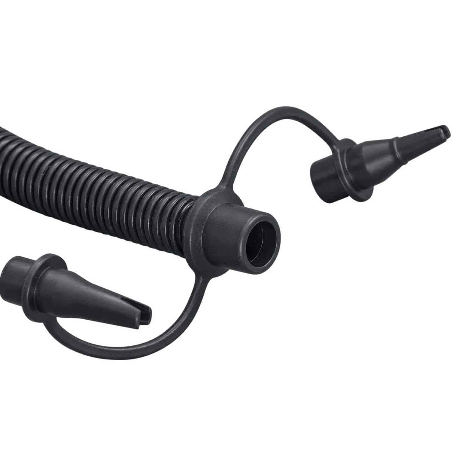 Volumen de bombeo de 0,85 L/ciclo. Máximo flujo de aire. Manguera flexible. 3 adaptadores de válvula para adaptarse a casi todas las válvulas de inflado.