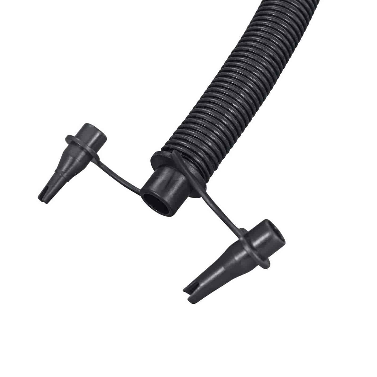 Volumen de bombeo de 1,6 L/ciclo. Inflado rápido. Manguera flexible. Con cambio fácil de inflado a desinflado. 3 adaptadores de válvula que se adaptan a casi todas las válvulas de inflado.
