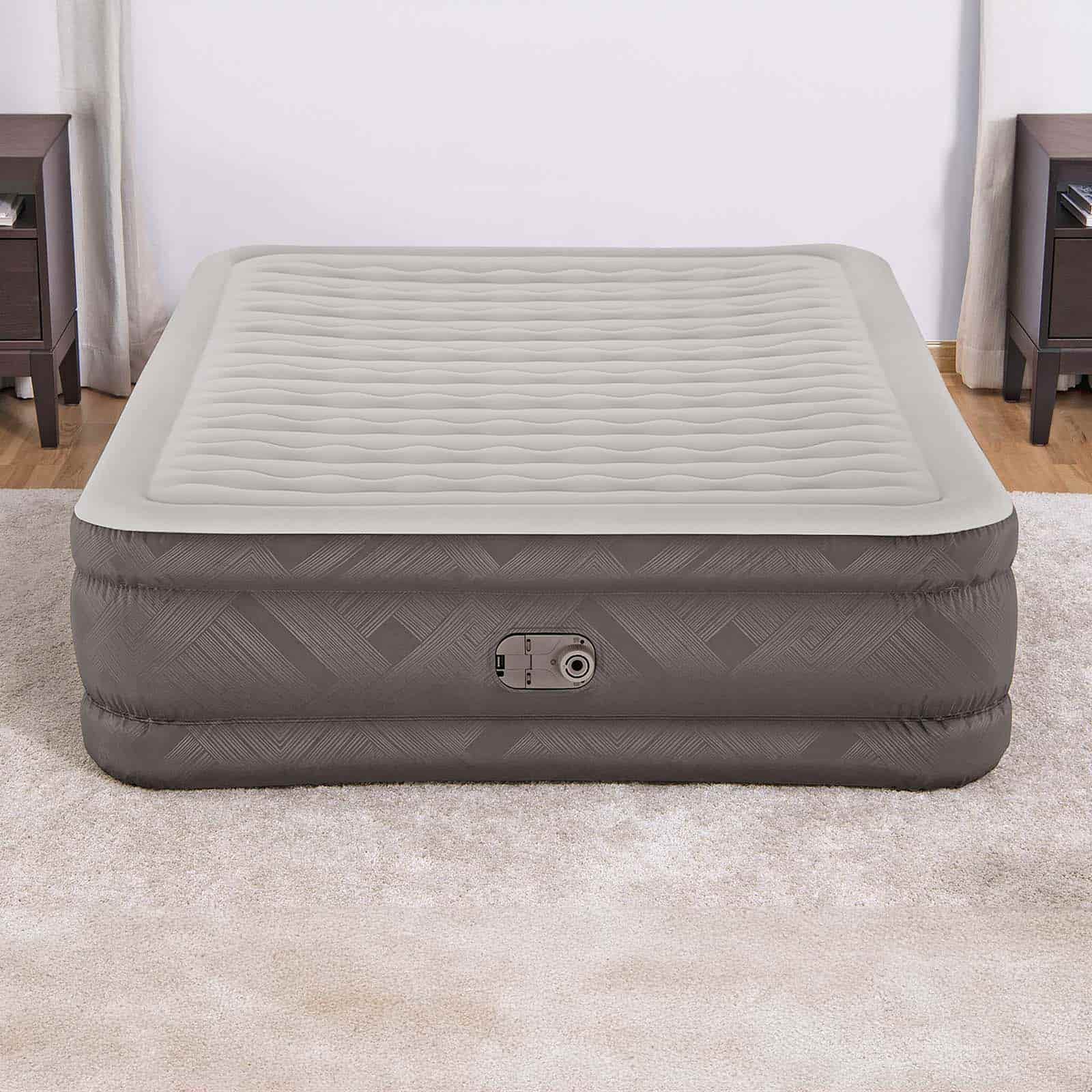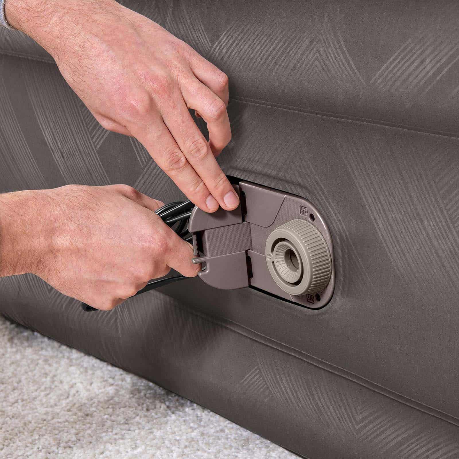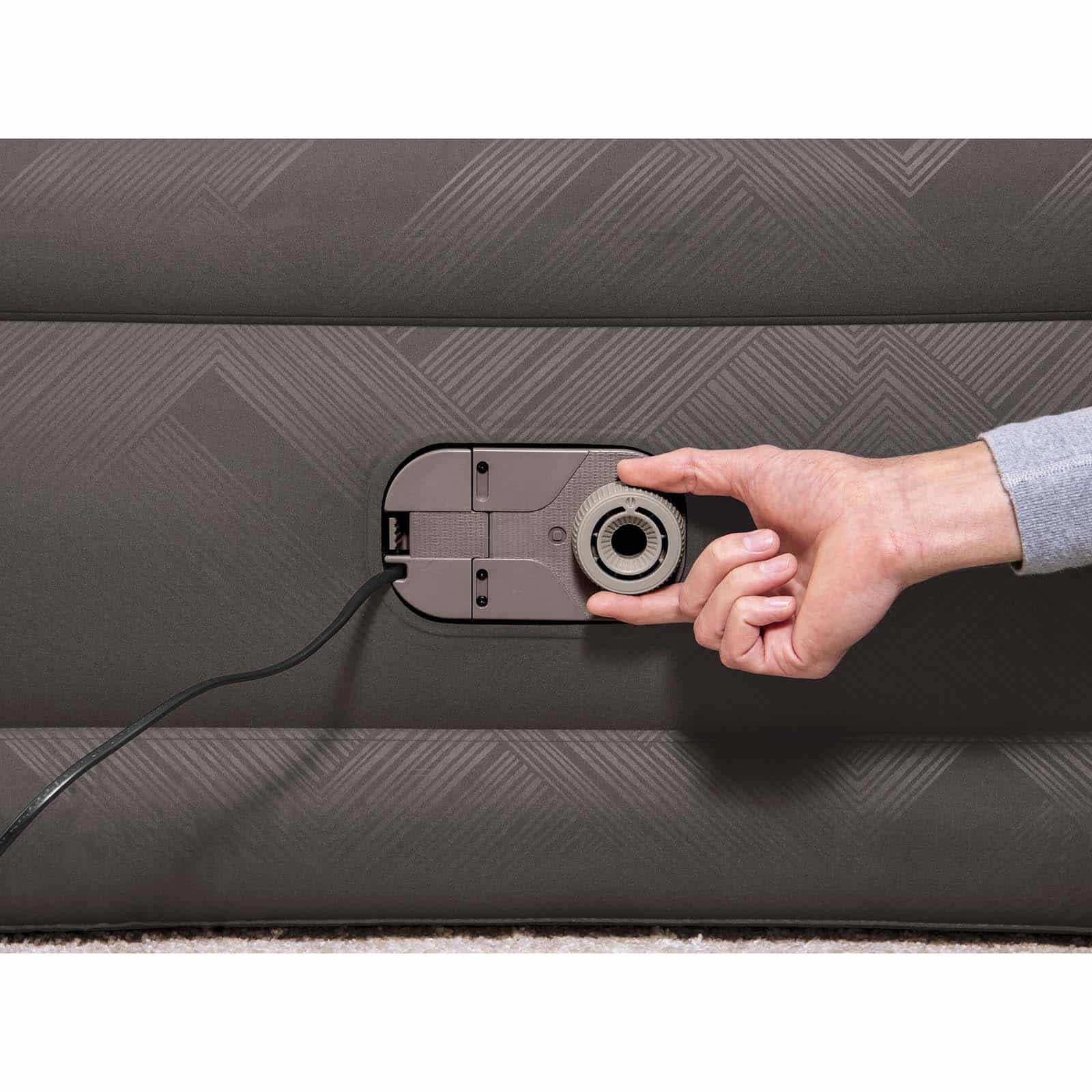 Gracias a la bomba de aire eléctrica de 220-240 V incorporada, este colchón se infla completamente en unos 5 minutos, y se desinfla igual de rápido con su válvula de liberación. Una vez vacío, se guarda fácilmente en su bolsa de transporte incluida.