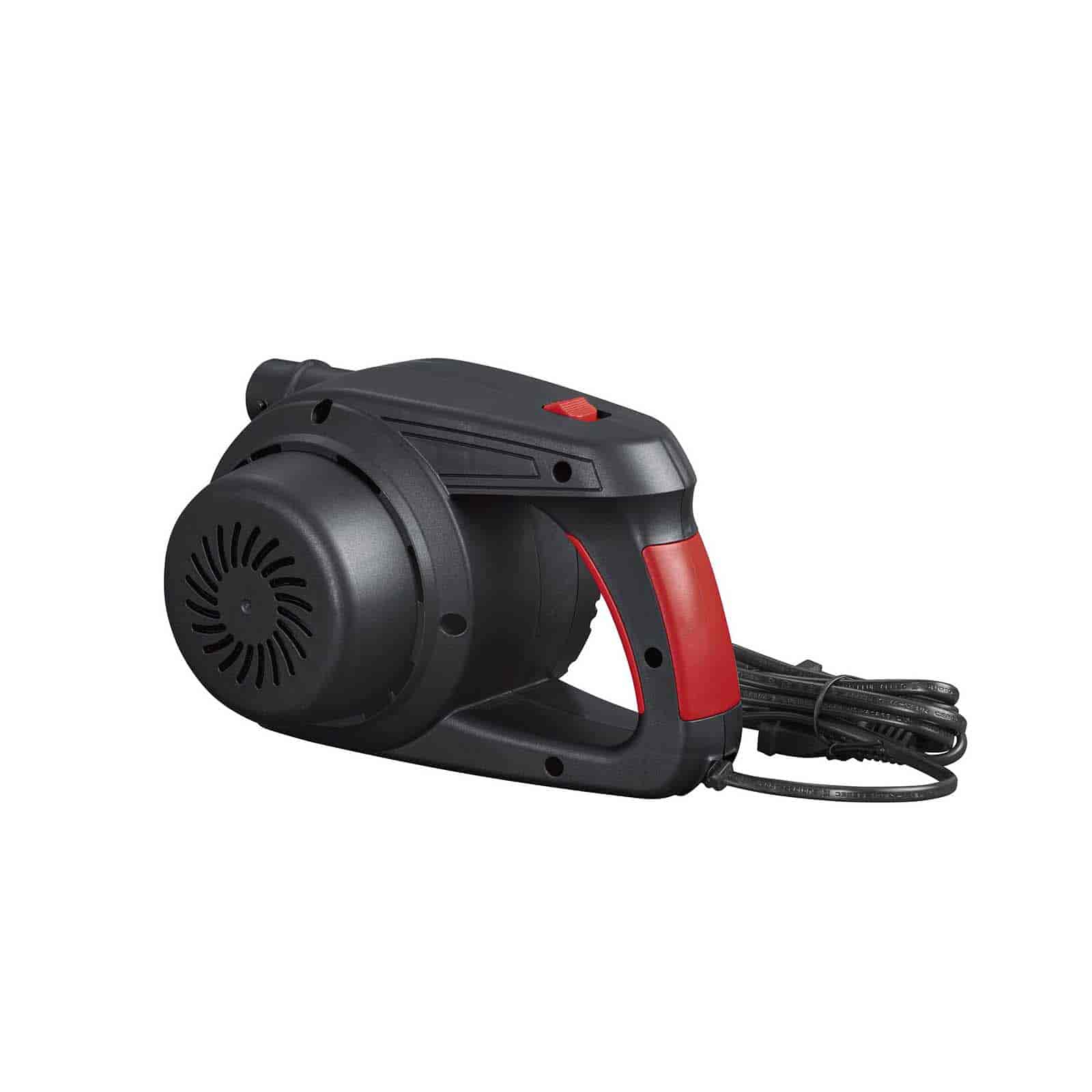Flujo de aire máximo: 1100 L/min. Súper cámara de aire para hinchado rápido. Cambio fácil infla/desinfla. 3 adaptadores de válvula. Infla artículos hasta 0,97 PSI / 0,067 BAR. Toma de corriente doméstica de 220 V