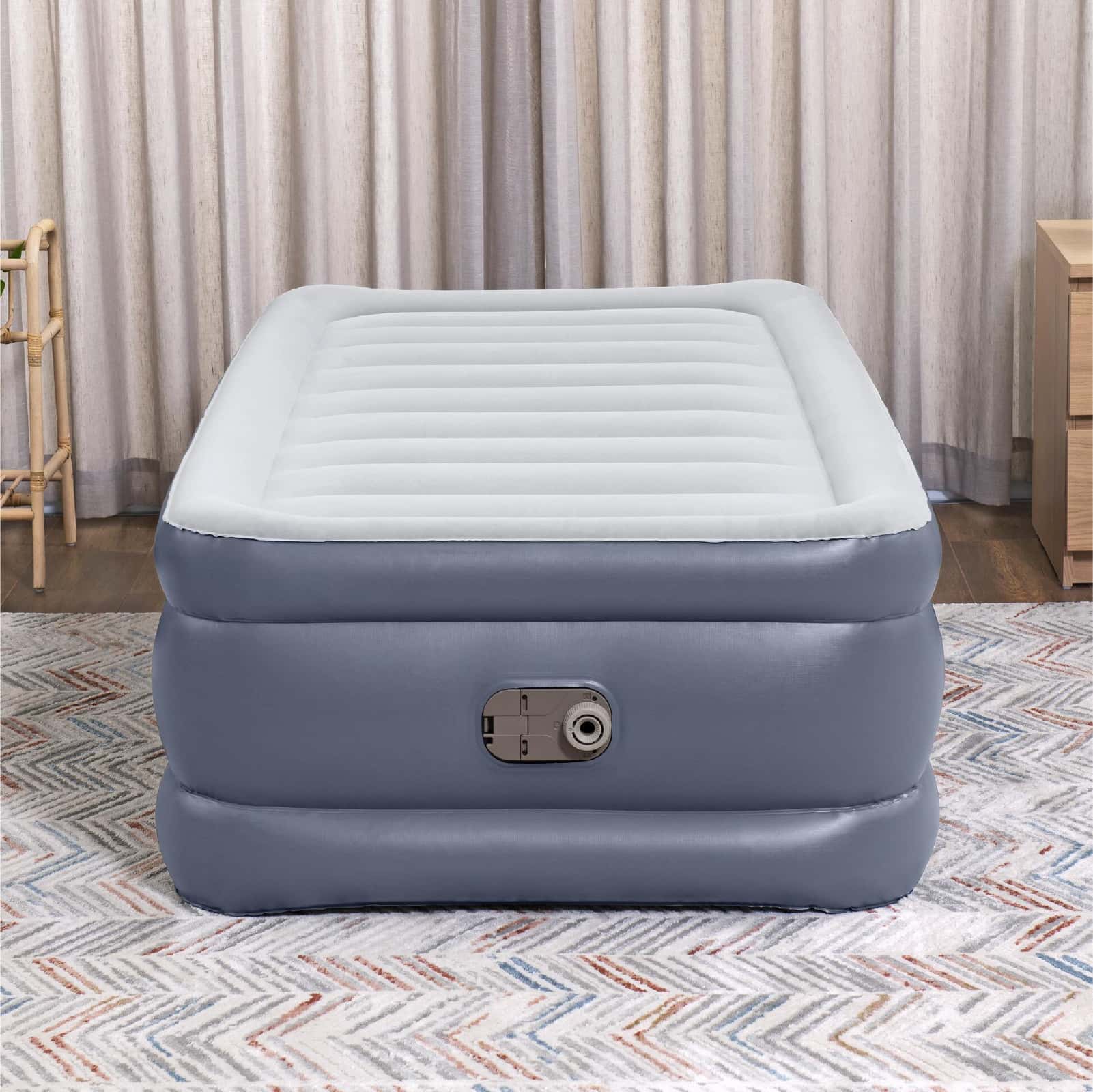 Este colchón hinchable de tamaño Twin está pensado para ofrecerte un descanso reparador sin renunciar a la practicidad. Con su diseño robusto, materiales de alta calidad y bomba eléctrica integrada, es ideal tanto para el hogar como para escapadas de fin de semana o viajes de camping.