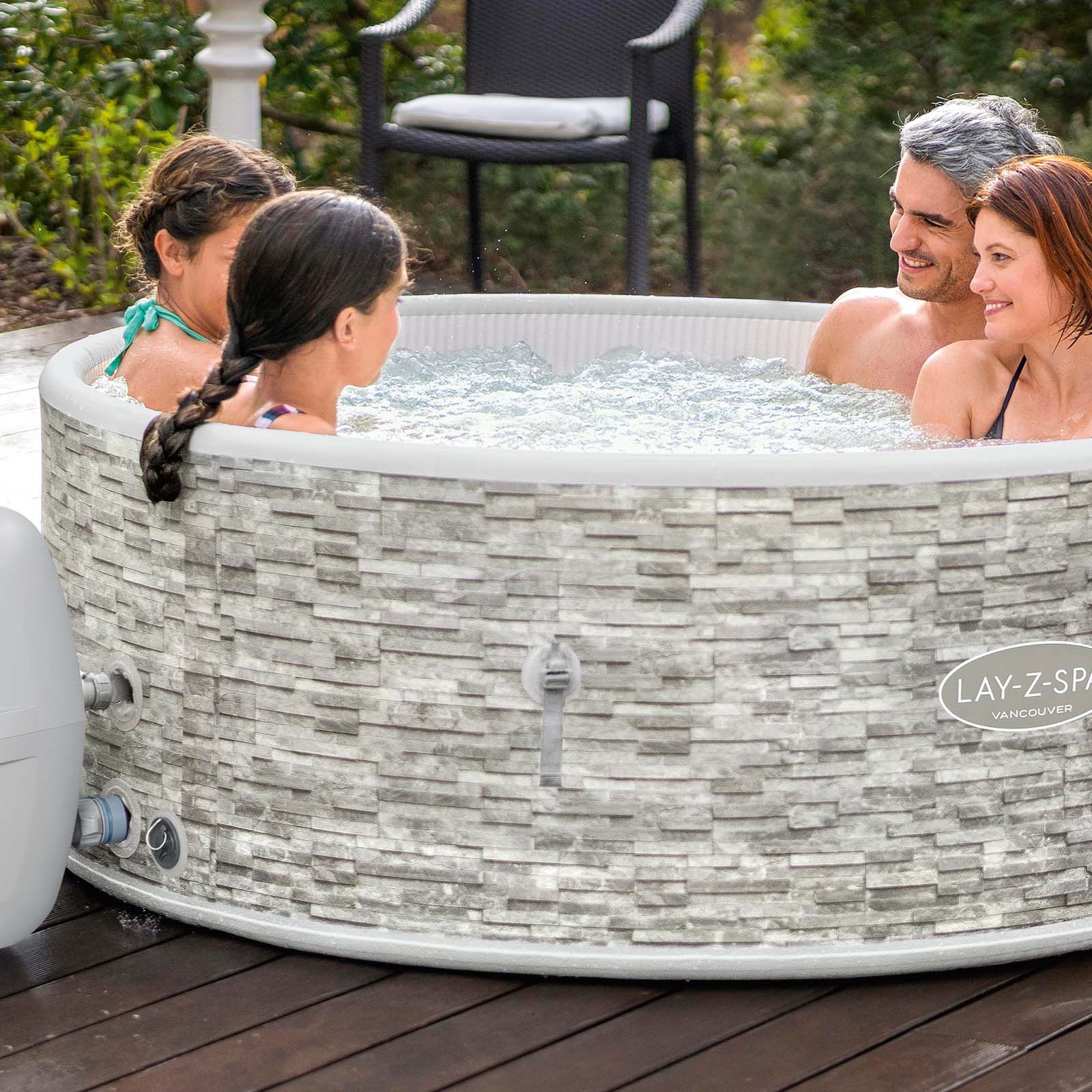 Imagínate, al final del día, sumergiéndote en agua caliente y burbujeante en tu propio jardín. Con Lay-Z-Spa Vancouver AirJet Plus, puedes disfrutar de un masaje relajante en casa, perfecto para compartir hasta con 5 personas.