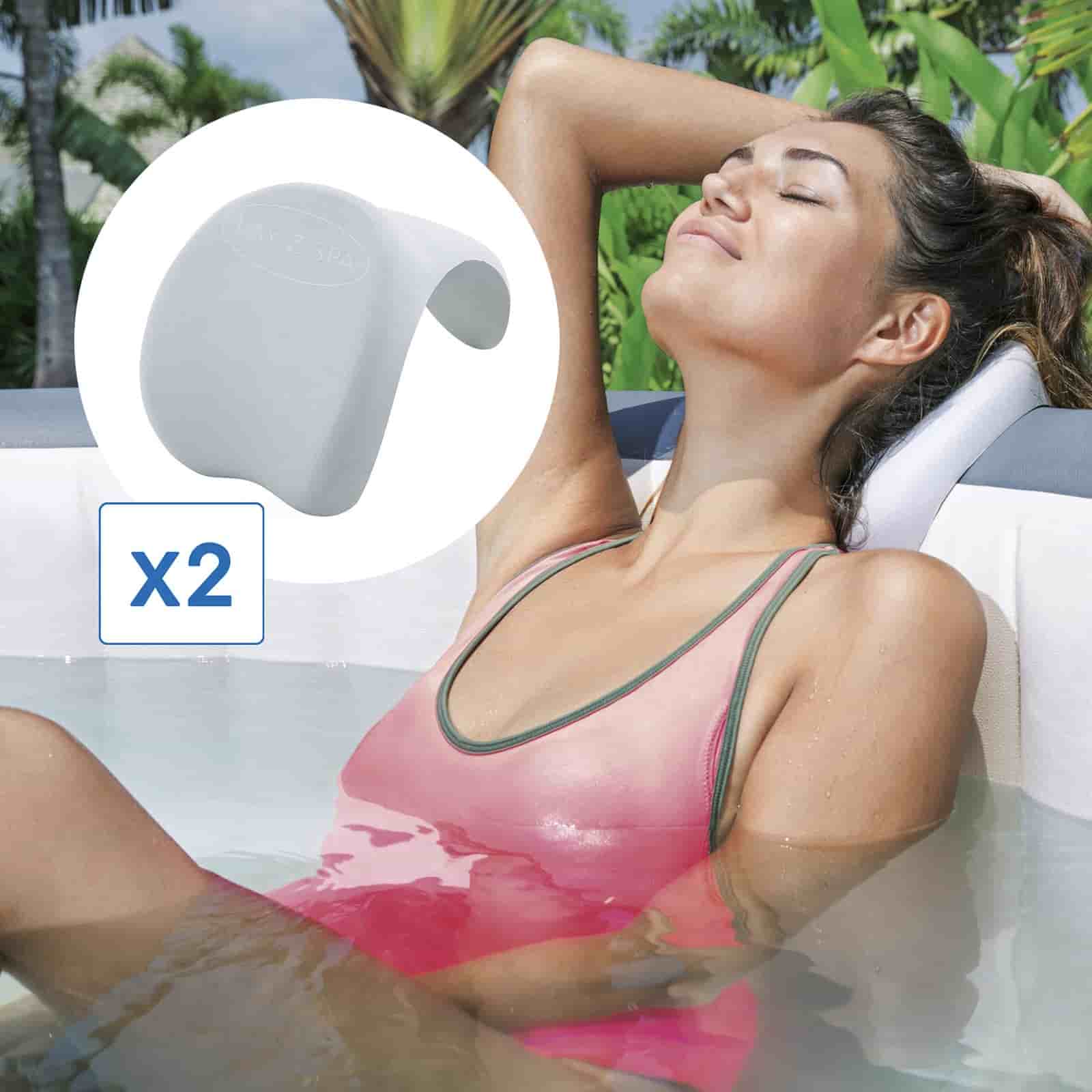 Completamos el pack con 2 almohadas Lay-Z-Spa ergonómicas, fabricadas en material impermeable y antideslizante. Diseñadas para adaptarse a la curvatura del cuello y ofrecer un soporte cómodo durante tus sesiones de hidromasaje.
