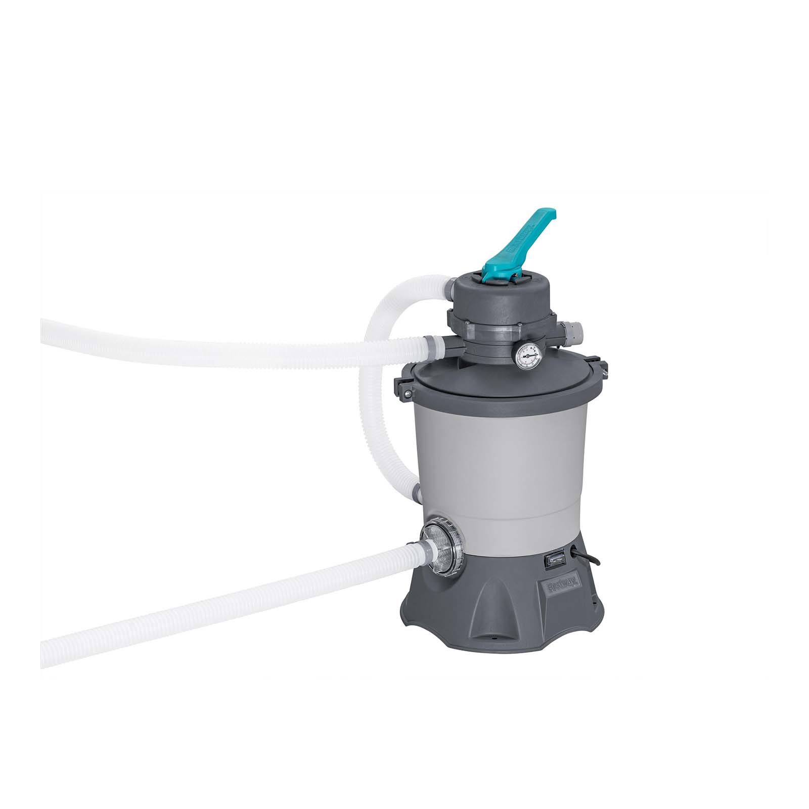 El conjunto viene con filtro de arena, skimmer de superficie, escalera, lona de suelo, cubierta protectora y dispensador químico ChemConnect®, para que su mantenimiento sea sencillo.