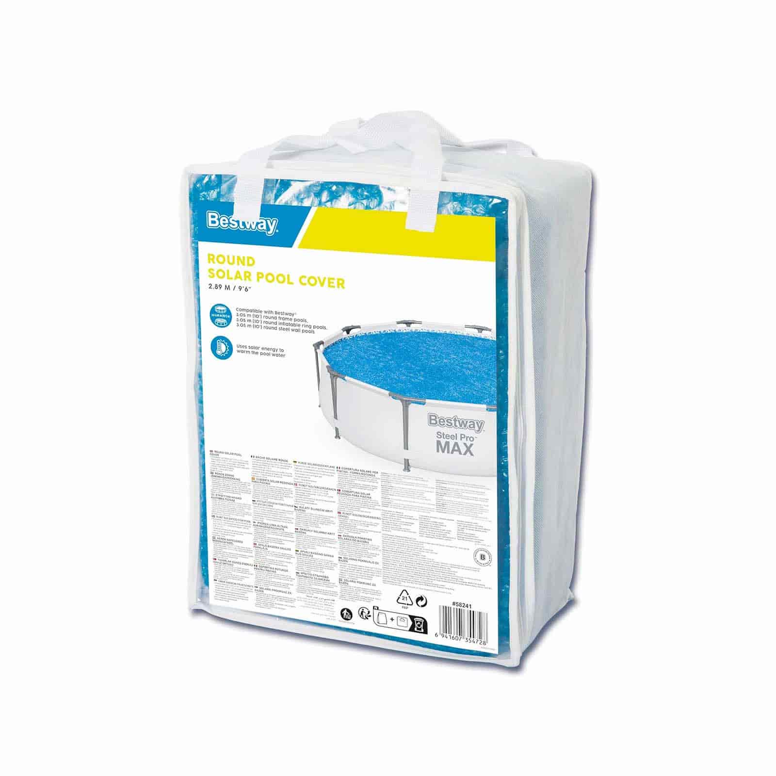 Mantén tu piscina siempre lista para disfrutar con la cubierta solar redonda Bestway®, el complemento imprescindible para cuidar el agua y optimizar su temperatura sin esfuerzo.
