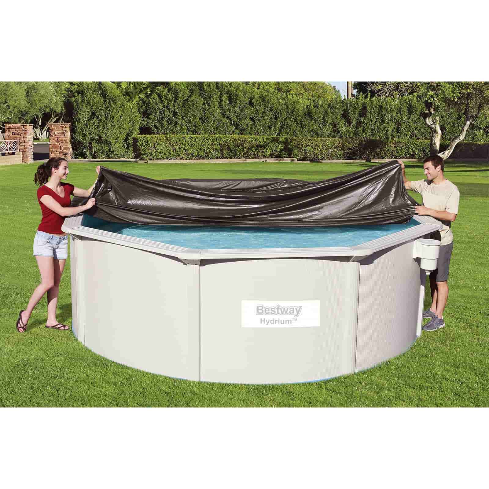 Cuando la piscina no está en uso, lo mejor es mantenerla protegida. Con la cubierta redonda Bestway®, podrás conservar el agua mucho más limpia y lista para el próximo baño.