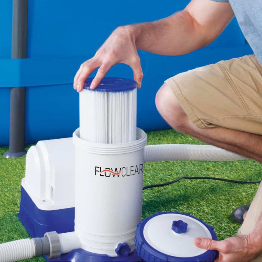 Si tienes nuestra depuradora de cartucho Flowclear, esta es perfecta para piscinas pequeñas o de uso ocasional, pero requiere un poco más de cuidado.