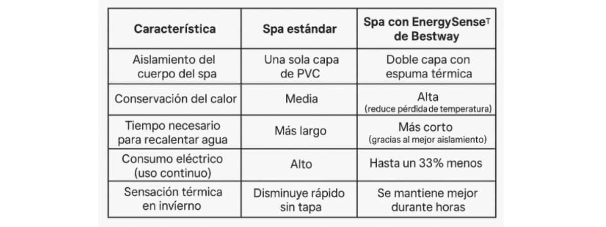 Los spas con cobertores térmicos, protectores para suelos y estructuras exteriores de doble capa como los modelos EnergySense de Bestway consumen hasta un 33% menos de energía comparado con otros spas hinchables sin esta tecnología.